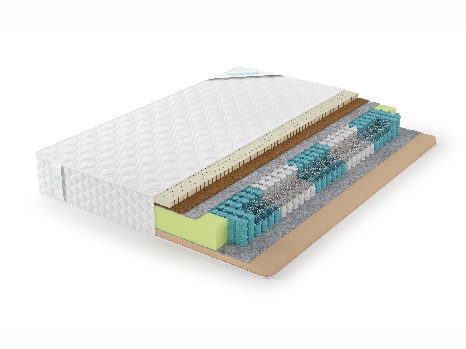 Средне-жёсткая сторона матраса представлена комбинацией таких материалов как натуральные латекс и кокос. Это очень комфортные дышащие материалы, которые к тому же обладают высокой гигиеничностью. Койра кокоса к тому же оказывает бактерицидный эффект и гарантирует матрасу полное отсутствие пылевых клещей, что важно для чистоты спального места.