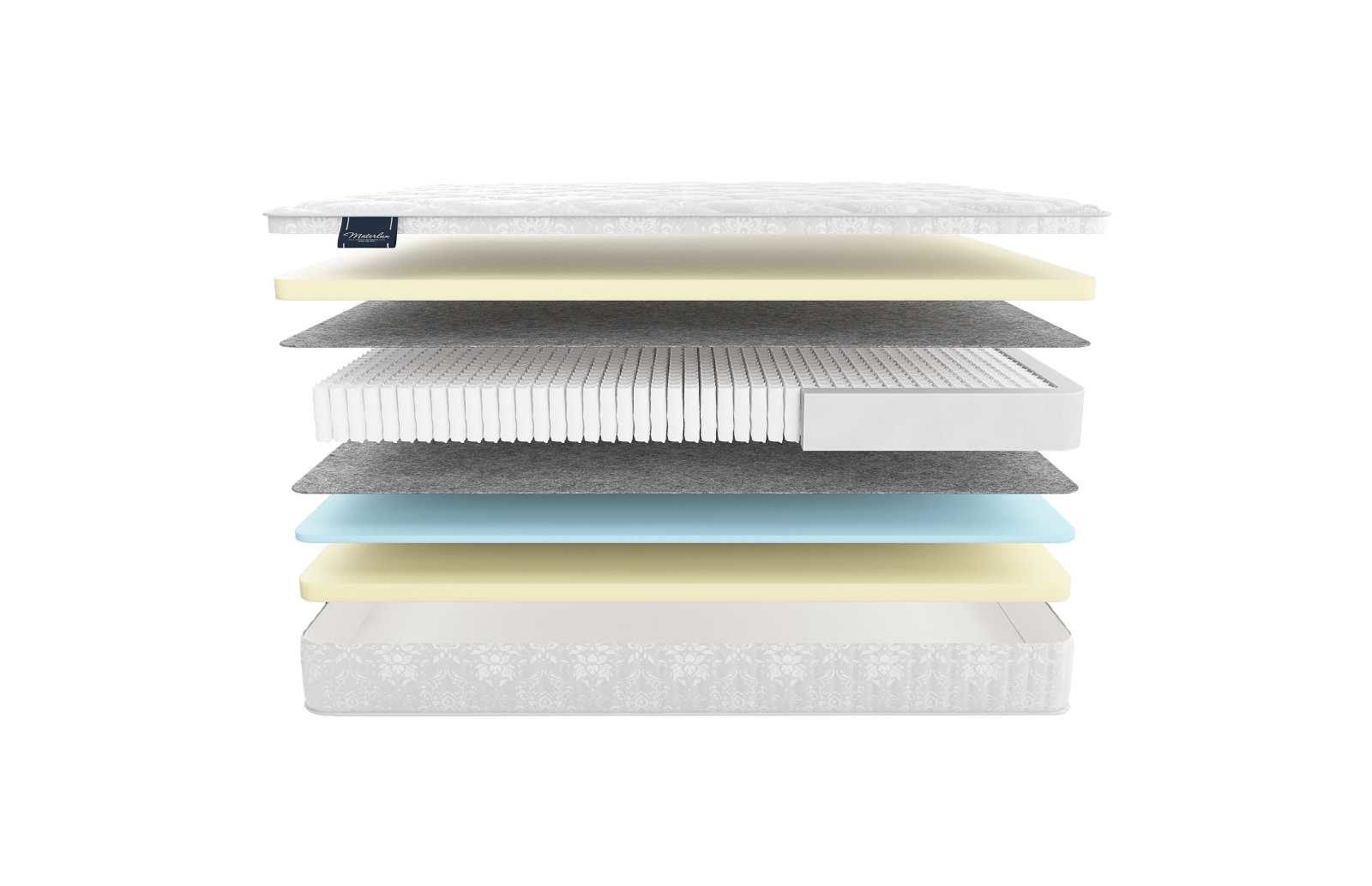 Главной изюминкой модели выступает пена Мемори. Пластичный наполнитель располагается с двух сторон матраса в толщине 5 см. Особенность данного наполнителя – это его уникальная пластичность. Слой одновременно эластичный и обладает вязкостью. Когда вы кладёте что-то весомое на поверхность такого материала, то он стремится обволакивать контактную область. Формируется аккуратный слепок. Человек такую подстройку ощущает, как высокий комфорт, ему ничего не мешает. Более того, часто спустя небольшой отрезок времени контакт с поверхностью вовсе перестаёт чувствоваться, возникает ощущение невесомости и глубокого релакса.