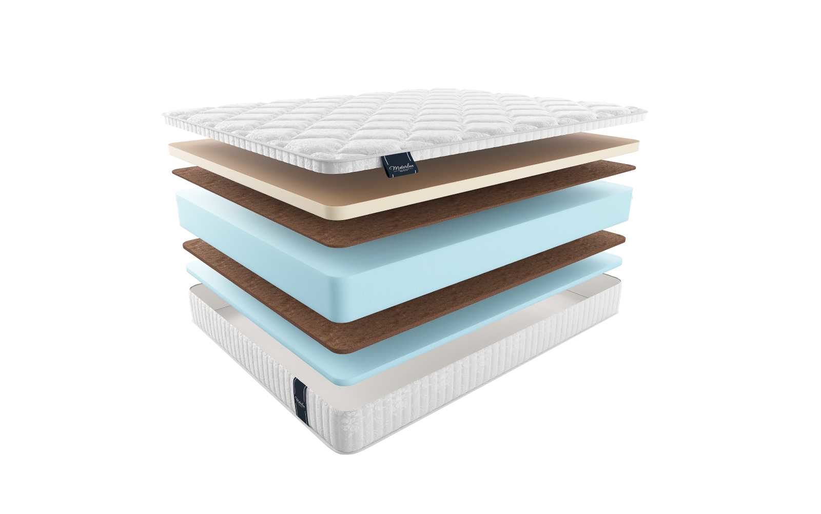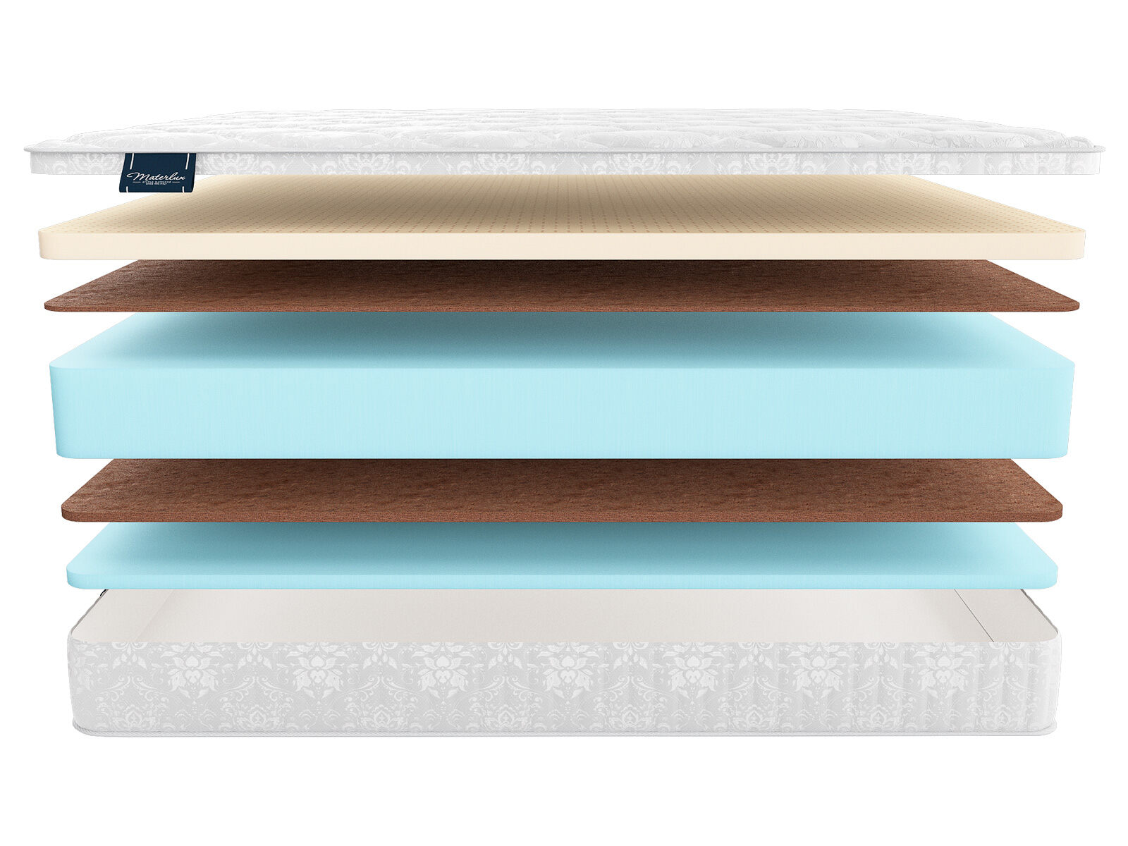 Кроме пен в матрасе установлена и койра кокоса. Слои жёсткого и плотного наполнителя необходимы для того, чтобы спина человека получила должную опору и поддержку. Материал формирует правильный отклик на давление, адаптируясь под естественные изгибы спины.