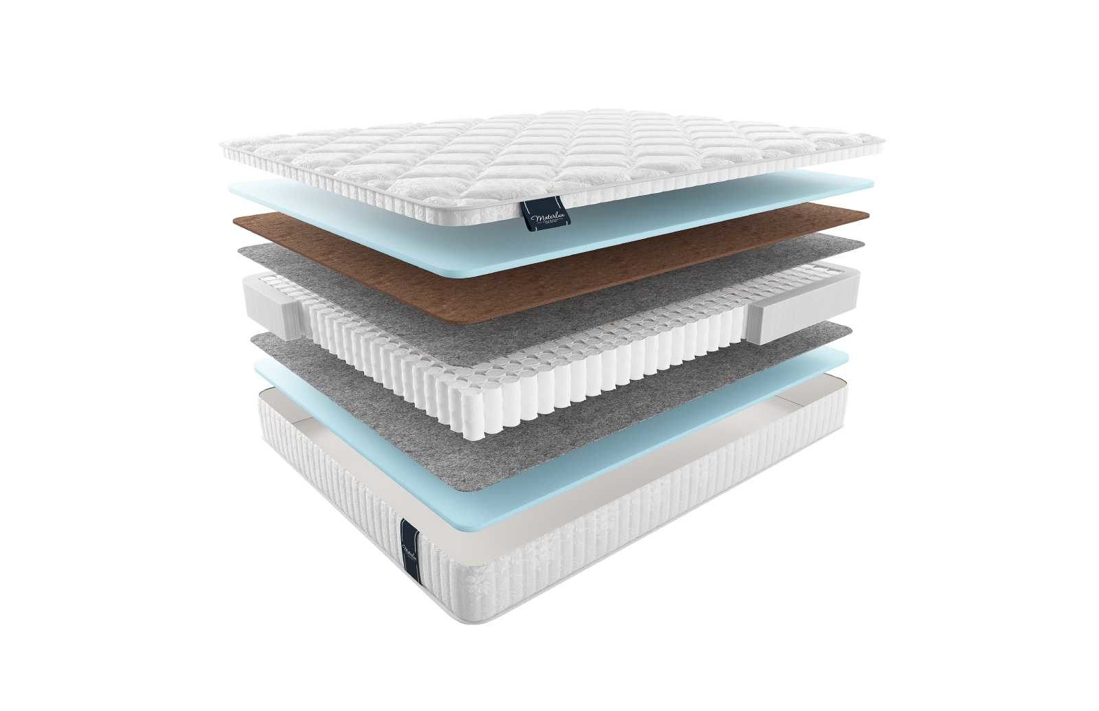 Модель Jardine от Materlux построена на блоке пружин TFK и отличающейся комбинацией наполнителей. Благодаря такому решению матрас обладает различной жёсткостью с каждой из сторон.