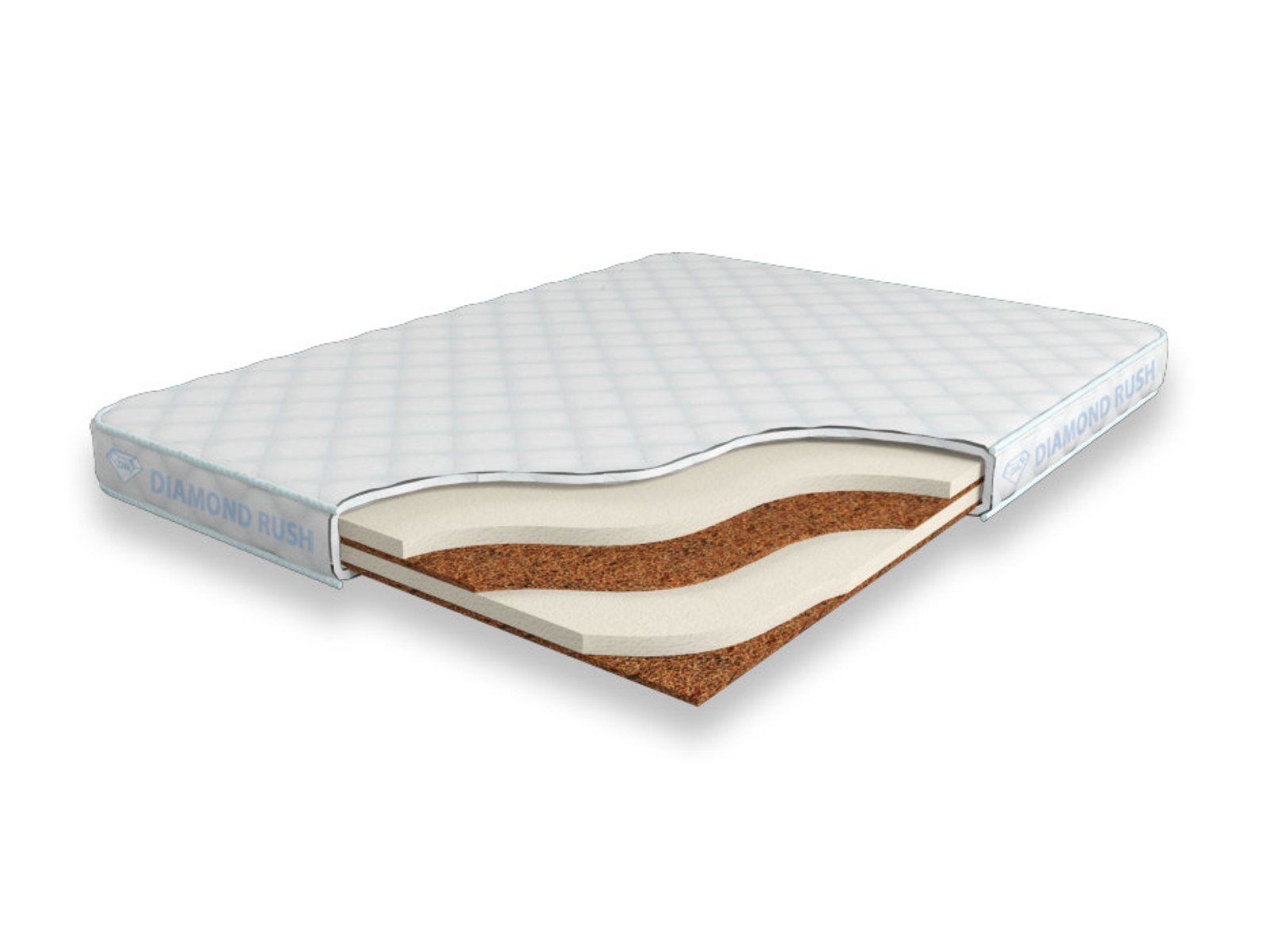 Матрас Diamond Rush Mix Cocos 8 SD является беспружинным, т.е. не имеет в своей основе пружинного блока. В его состав входят одно или несколько чередований слоев латексированной кокосовой койры (1см) и искусственного латекса (3см). Такая модель матраса обладает средним ортопедическим эффектом и имеет разные по жесткости стороны.