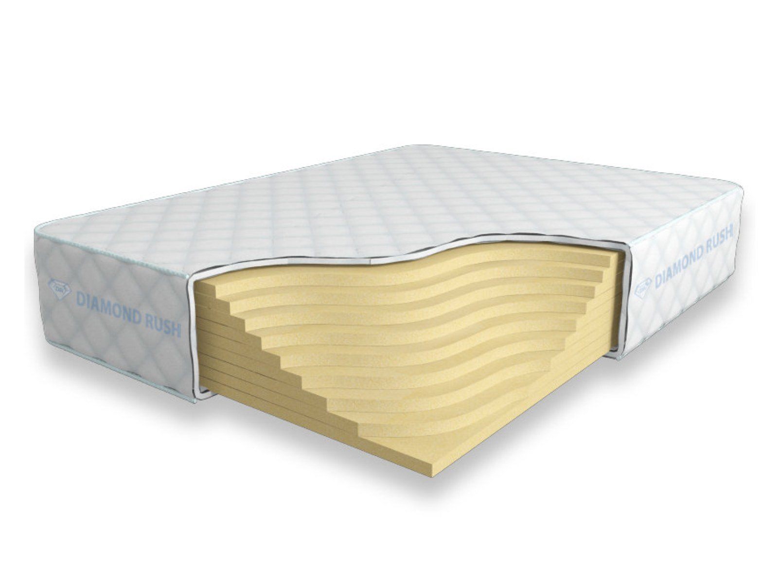 Матрас Diamond Rush Solid Basic 27 SD является беспружинным, т.е. не имеет в своей основе пружинного блока. В его состав входят один или несколько слоев качественного мебельного поролона. Матрас выполненный целиком из пены и имеет среднюю жесткость и невысокую стоимость.