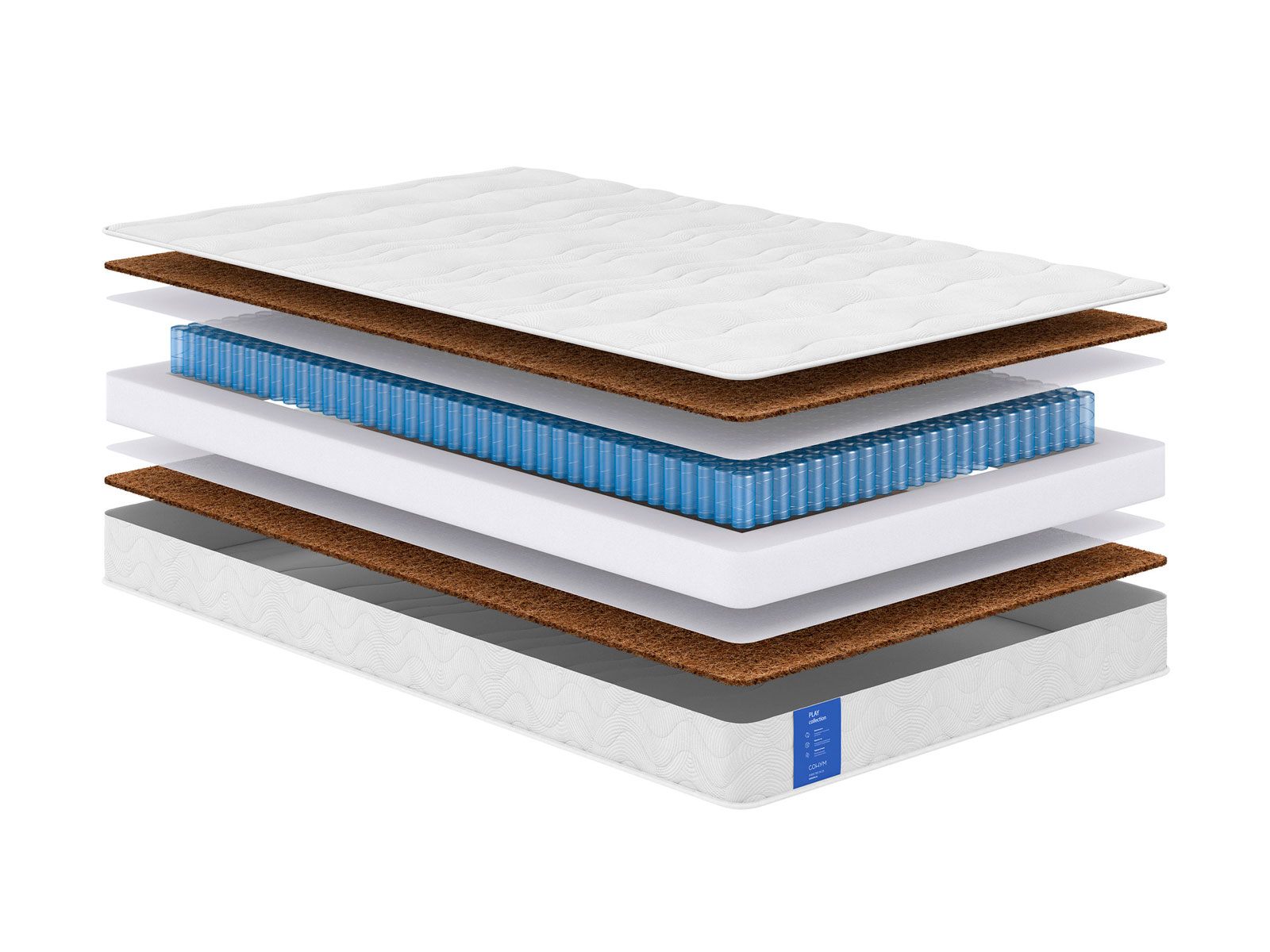 Жёсткий матрас на основе блока независимых пружин Pocket, плотностью 512 пружин на спальное место снимает нагрузку с позвоночника. Войлок равномерно распределяет давление от пружинного блока, а натуральное наполнение верхнего слоя из латексированной кокосовой койры, придаёт матрасу необходимую упругость. Чехол выполнен из мягкого трикотажа, который не впитывает лишние запахи и обладает высокой воздухопроницаемостью.