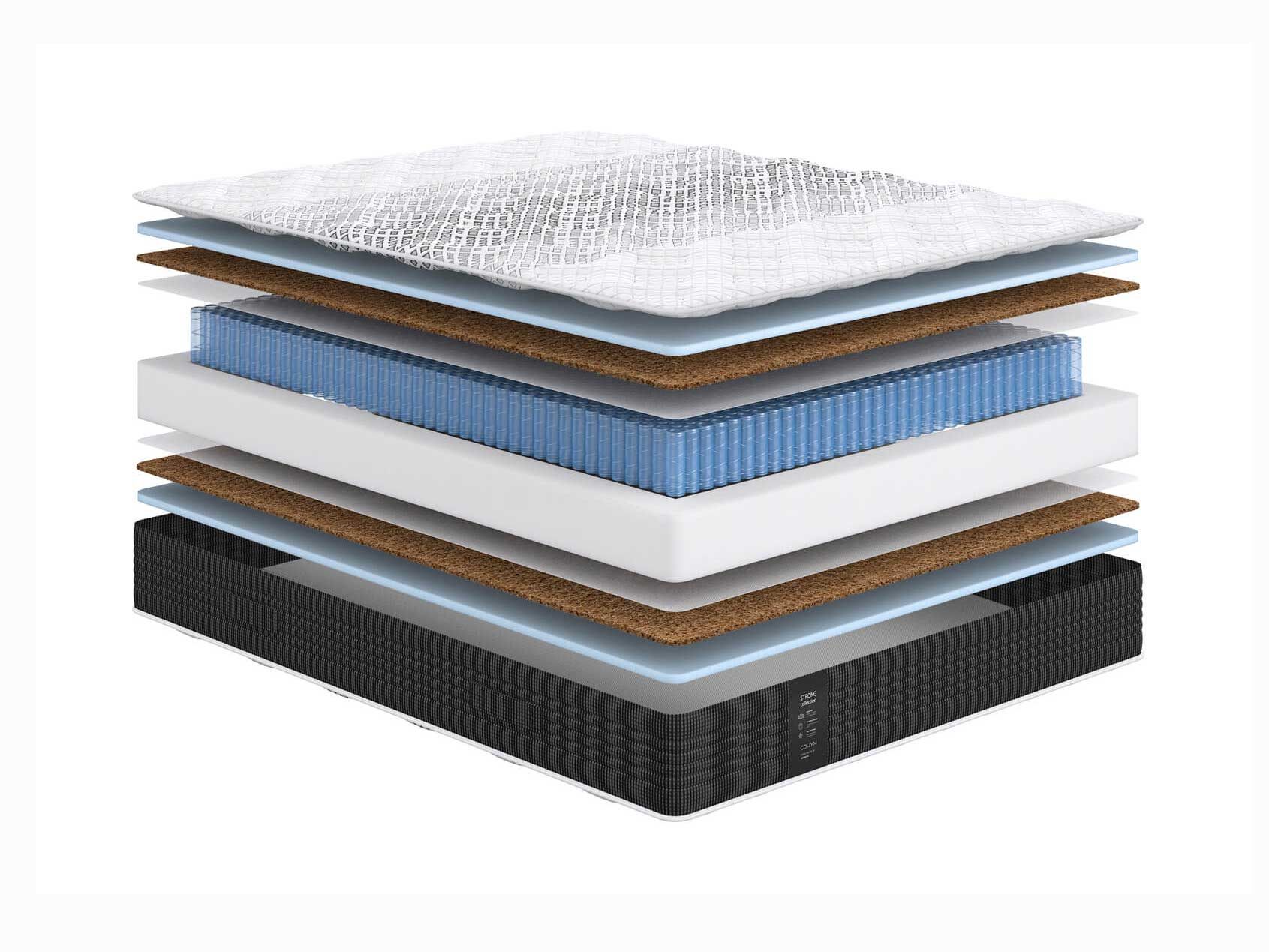 Кокосовая койра. Природный натуральный материал. Состоит из волокон ореха кокосовой пальмы, пропитанных составом из натурального латекса. Гипоалергенен, обеспечивает циркуляцию воздуха и теплообмен.