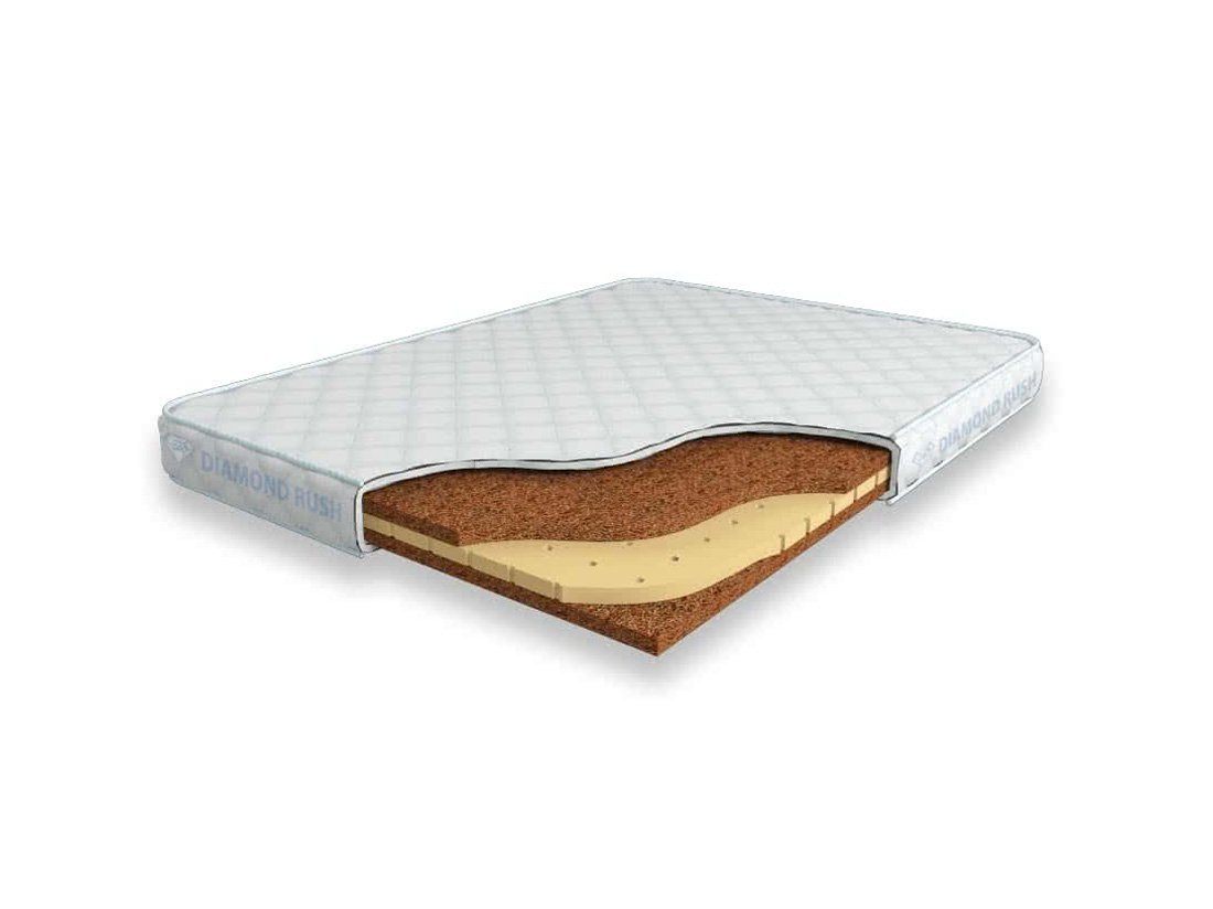 Матрас Diamond Rush Super Mix Cocos 9 DR является беспружинным, т.е. не имеет в своей основе пружинного блока. В его состав входят одно или несколько чередований слоев латексированной кокосовой койры и натурального латекса с перфорацией. Все слои по 3 см. Такая модель матраса относится к среднежестким и обладает ортопедическим эффектом.