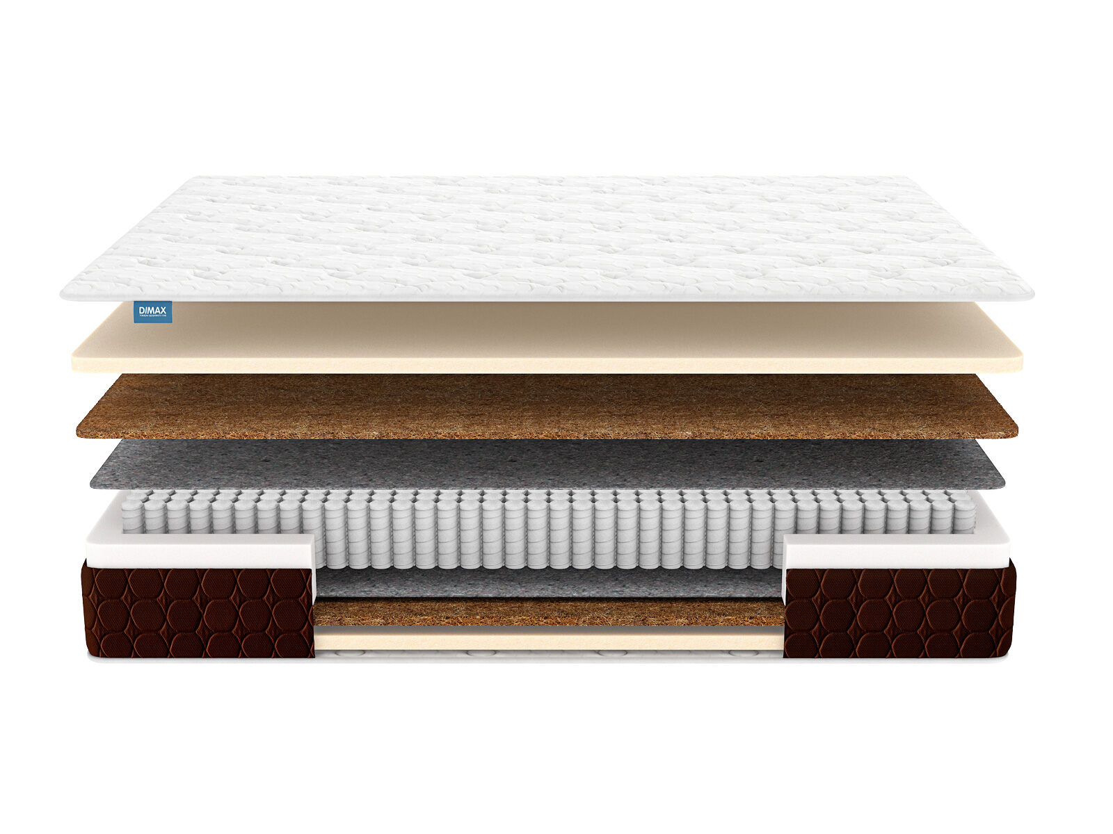 Димакс Мега Дабл — матрас с усиленной ортопедической поддержкой, созданный для тех, кто ценит баланс жесткой поддержки и комфортного погружения. Многослойная система из искусственного латекса, кокосовой койры и блока S1000 выдерживает вес до 140 кг, сохраняя анатомически правильное положение позвоночника даже при интенсивной эксплуатации.