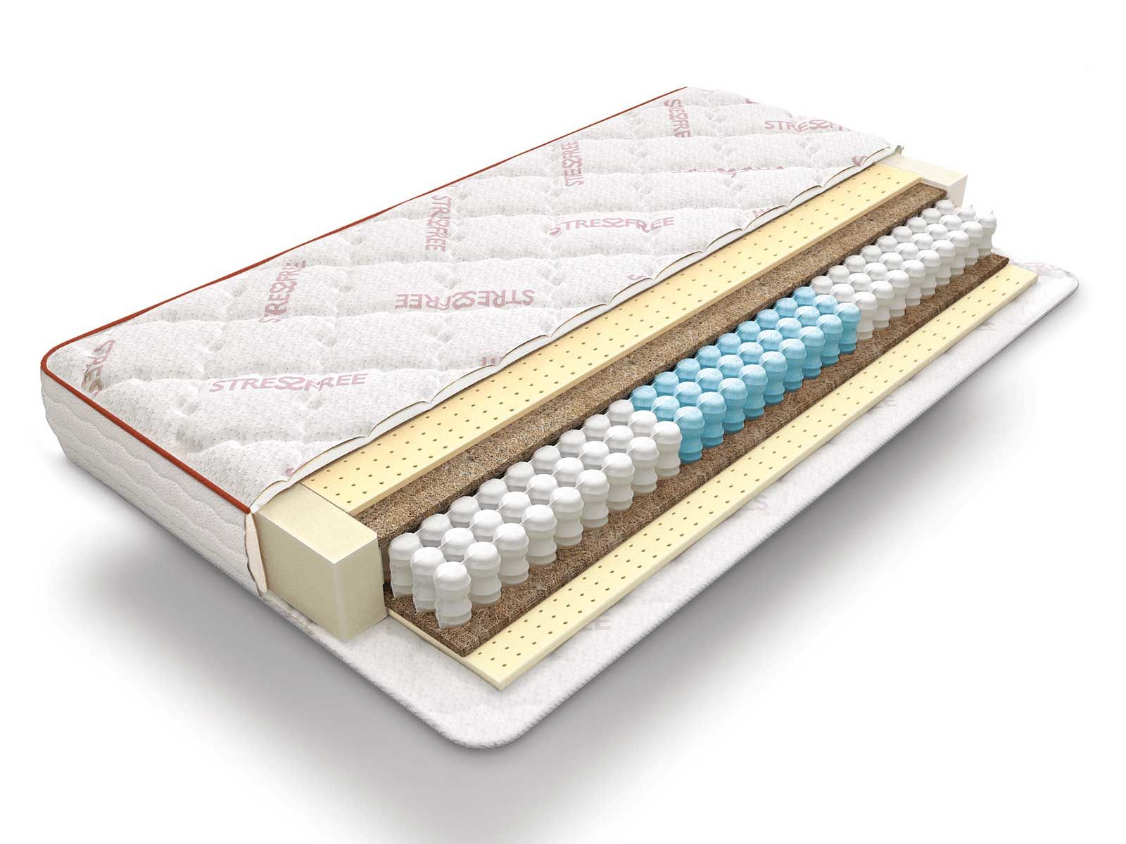 Чехол - система комфортности «STRESS FREE». Эксклюзивный трикотаж содержит специальную пропитку Ultraphil Plus, которая противодействует появлению в матрасе вредных микроорганизмов, плесени и пылевых клещей.