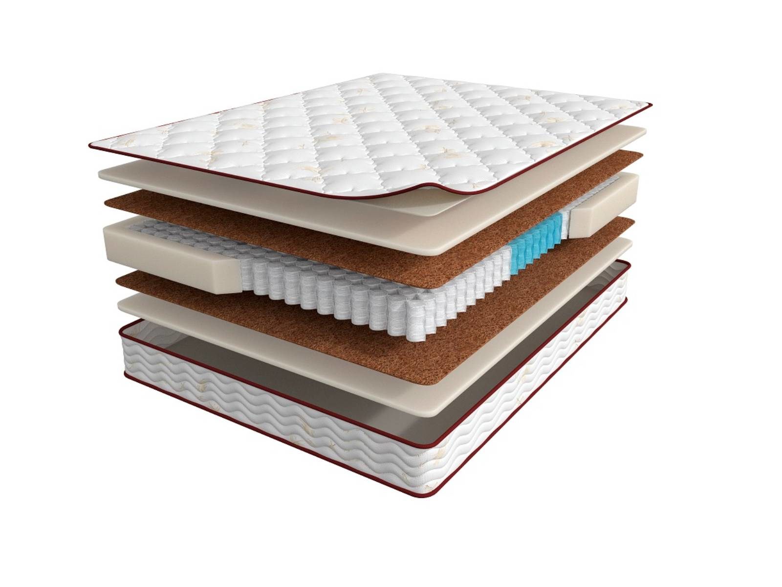 Коксовая койра - натуральный растительный материал с долгим сроком службы, который придает матрасу дополнительную упругость и прочность, распределяет давление на пружинный блок и обеспечивает естественную вентиляцию.