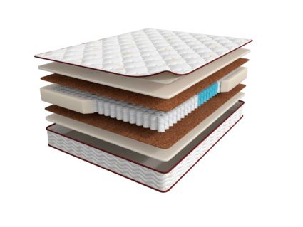 С обеих сторон от блока пружин расположены слои натурального латекса и кокосовой койры. Латекс – упругий и термостабильный материал c минимальным обратным давлением и быстрым восстановлением, придающий матрасу мягкость, благодаря которому во время сна улучшается кровообращение.