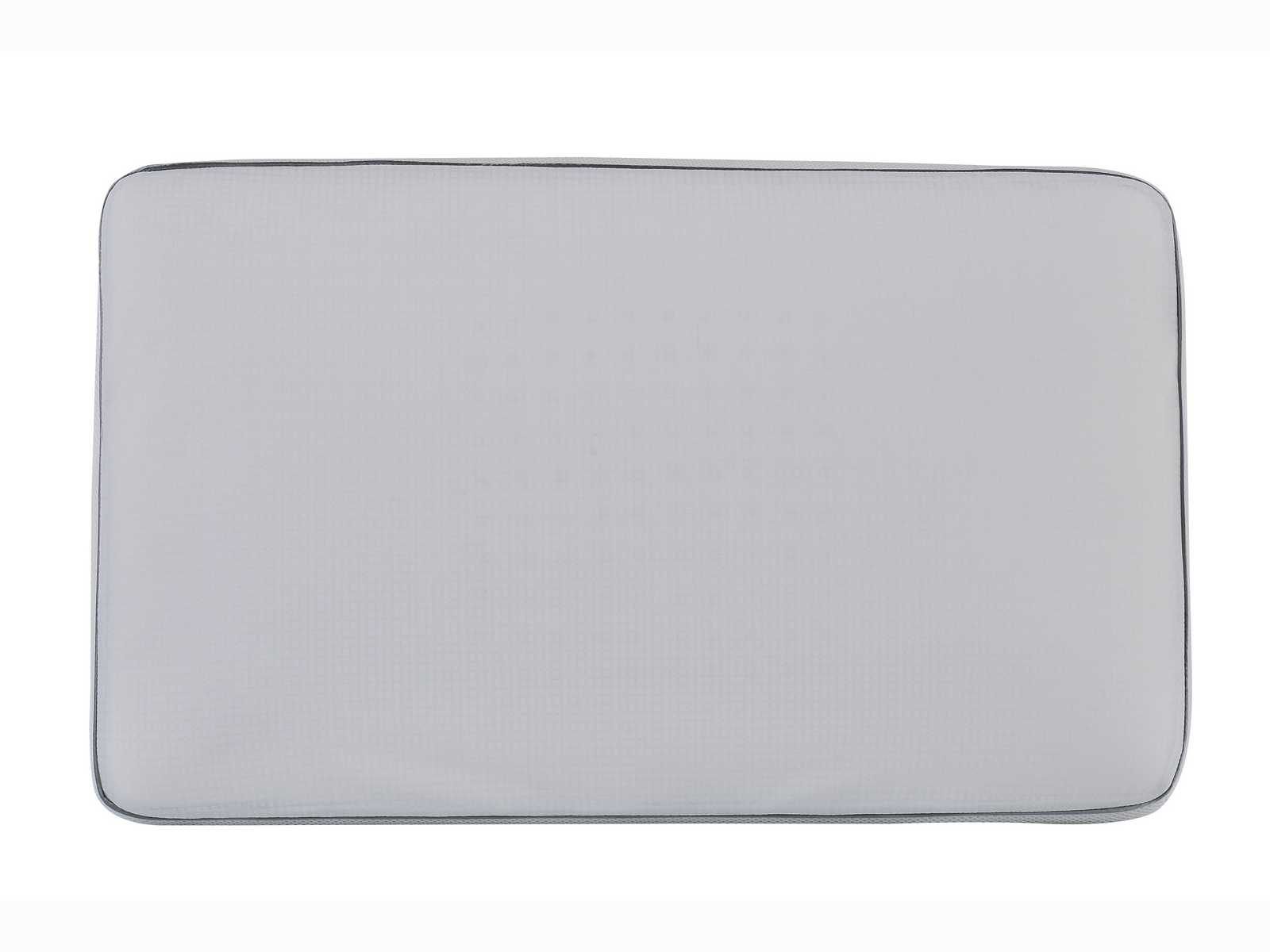 На подушку надет чехол с вшивной молнией. Его легко снимать для стирки или химчистки. Материалом наволочки послужила ткань Outlast. Данное волокно само по себе инновационно и изначально было разработано для скафандров космонавтов для защиты от сильных перепадов температур. Outlast способна к терморегуляции и, благодаря своим свойствам, дарит невероятный комфорт отдыхающему. На такой ткани прохладно в жаркий день и тепло зимой.