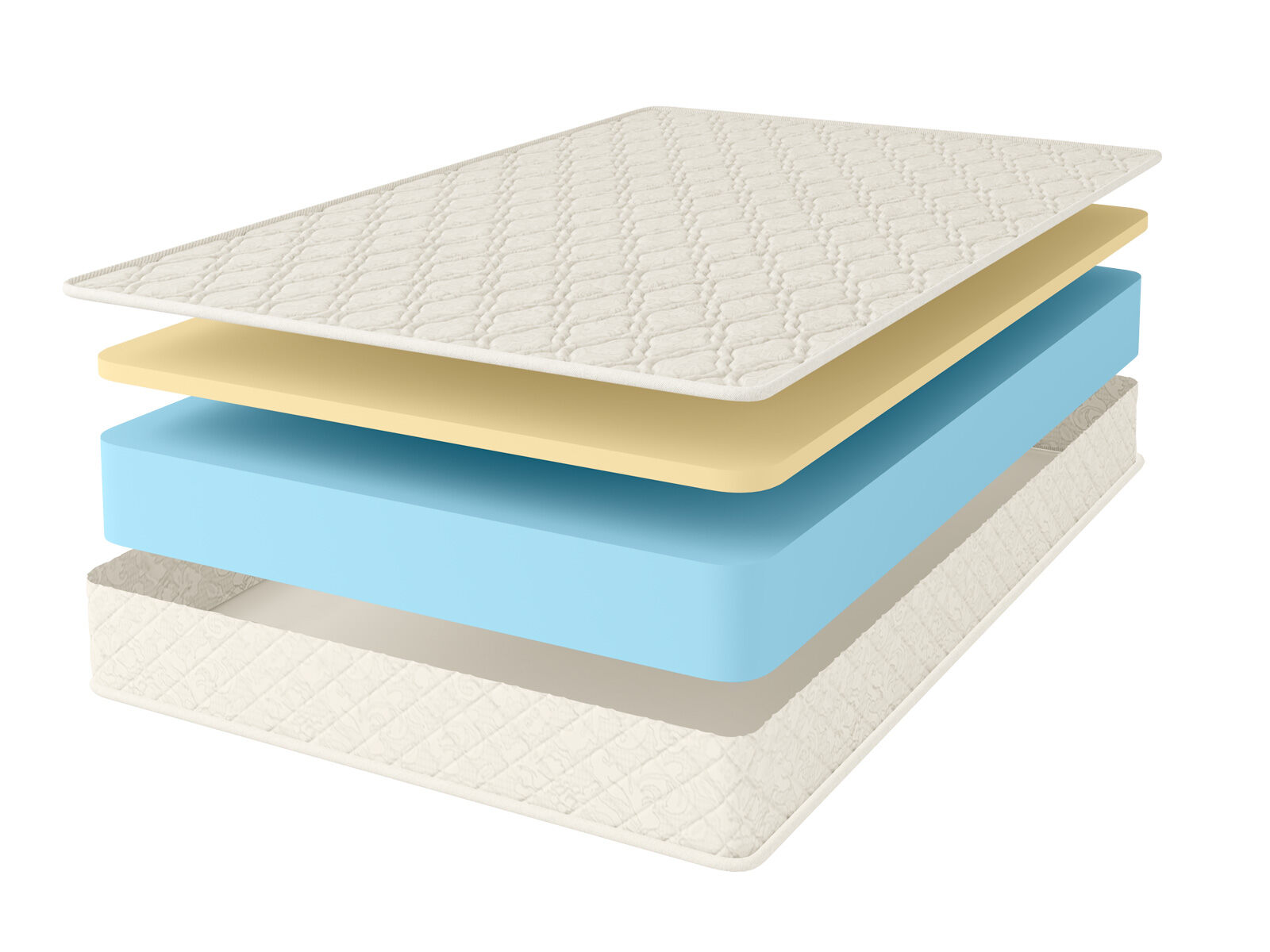 Матрас состоит из двух слоёв наполнителей: внушительного и большого блока пены Ecofoam и прослойки мягкого материала Мемори. Если пена обладает выраженными ортопедическими качествами, то Мемори – это анатомичный материал. В чём разница этих свойств? Ортопедические наполнители удерживают естественное и правильное физиологическое позвоночника, сохраняя здоровье осанки. Анатомические повторяют формы тела, способствуя быстрому расслаблению и комфорту человека.