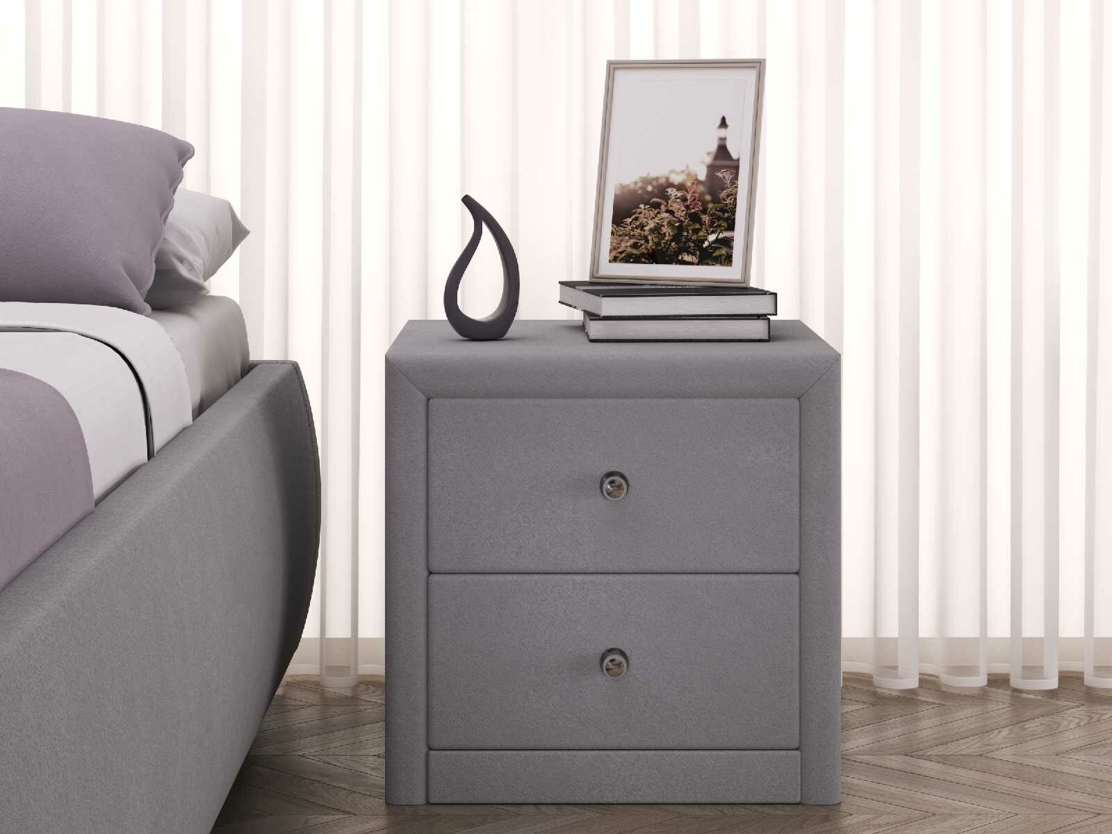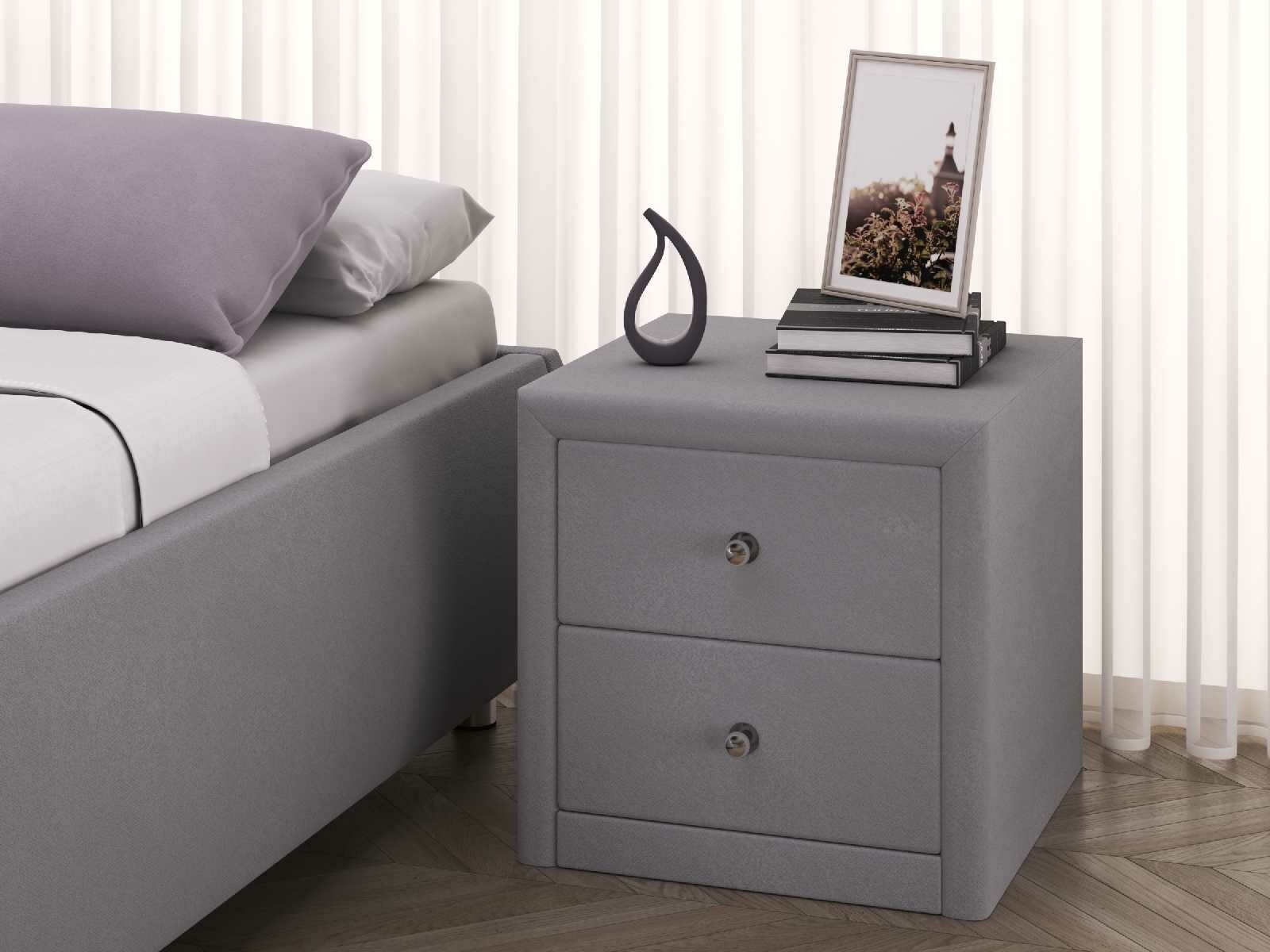 Прикроватная тумба «Мирано» самим своим видом создает атмосферу умиротворения, столь уместную в спальне. Прямые очертания модели подчеркнуты обивкой из качественного велюра. На ровной поверхности тумбы можно расположить будильник, ночник, стакан с водой. В двух выдвижных ящиках хватит места для ночной косметики, маски для сна, гаджетов, нескольких книг для вечернего чтения.