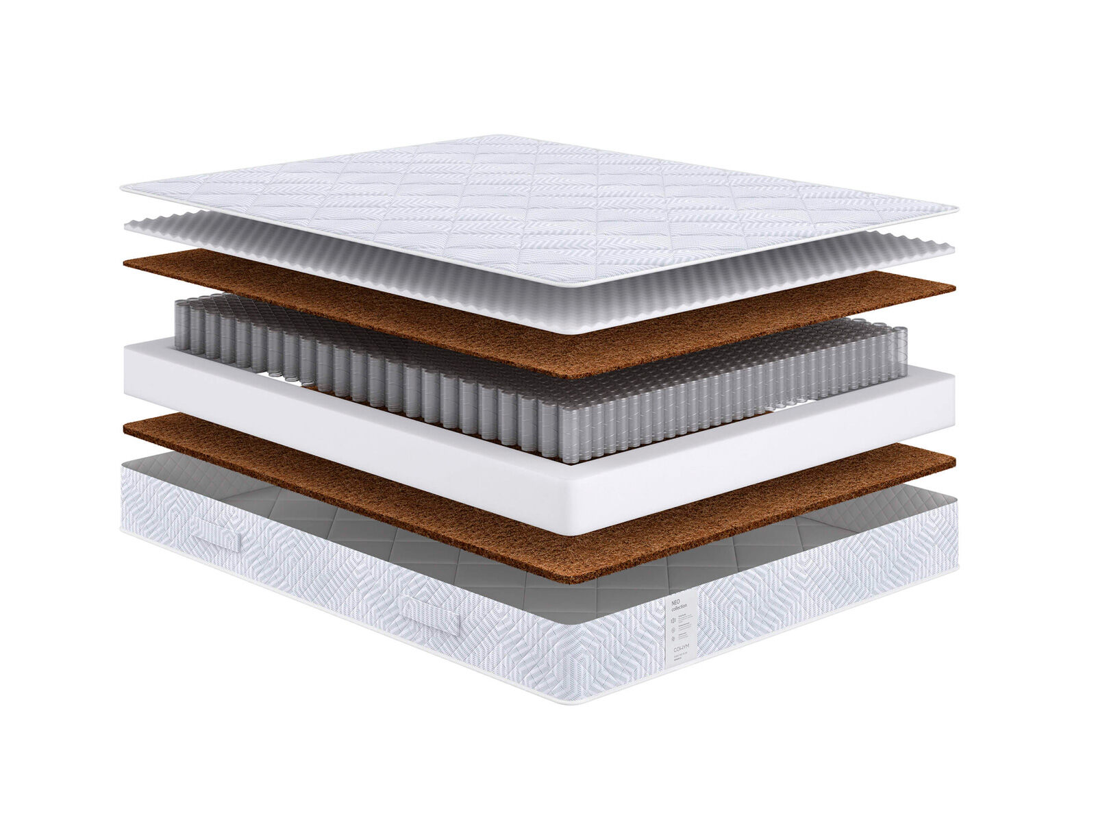Матрас с различным уровнем жесткости на основе блока ChessPocket – независимые пружины, расположенные в шахматном порядке для равномерной поддержки позвоночника. С одной стороны - сочетание массажной пены и кокосовой койры создает среднюю степень жёсткости для комфортного и расслабленного сна, а с другой – кокосовая койра оказывает ортопедический эффект за счёт жёсткости.