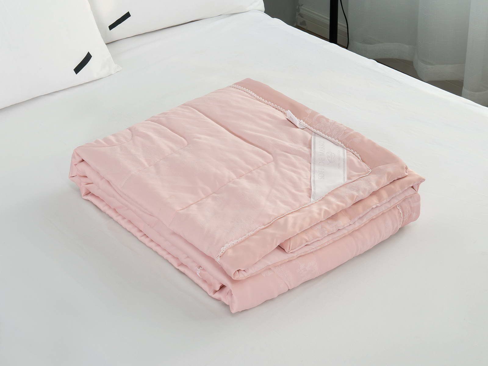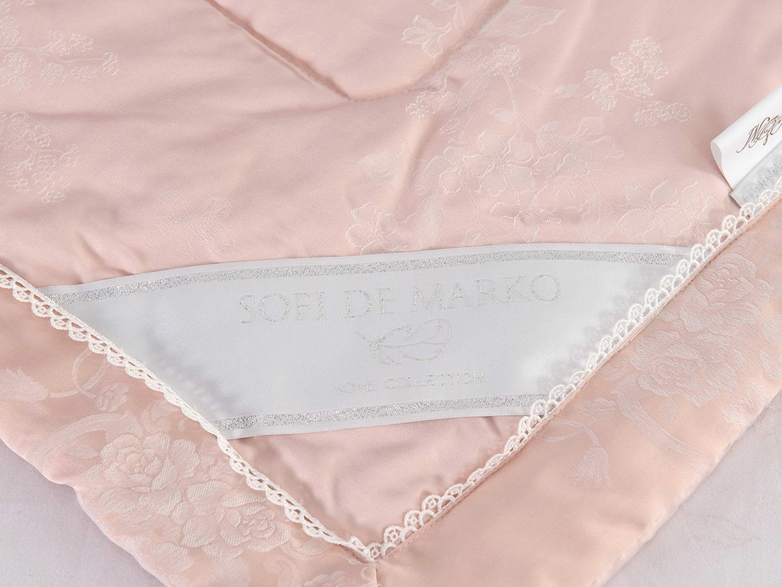 Одеяло представлено в модных цветах этого сезона: пудра, персик, крем, серый, карамель. Такие оттенки придадут нотки изысканности и утонченности вашей спальне. Изделие украшает декоративная стежка, создающая на одеяле прямые, изогнутые линии и окружности. С помощью специального станка на ткань нанесен уникальный повторяющийся рисунок в винтажном стиле. Вы можете выбрать узор на свой вкус: небольшой лавровый венок, венчающий корону, или одну из цветочных композиций среднего размера. По широкому канту в тон изделию проходит деликатная полоска светлого кружева.