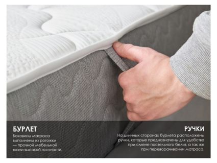 Наполнителем мягкой стороны выступает материал Мемори. Данная пена имеет вязкую тягучую структуру. Благодаря этому она великолепно подстраивается под формы тела. Наполнитель обладает так называемым эффектом памяти – он запоминает на некоторое время приложенное усилие и сохраняет форму ещё несколько секунд после надавливания.
