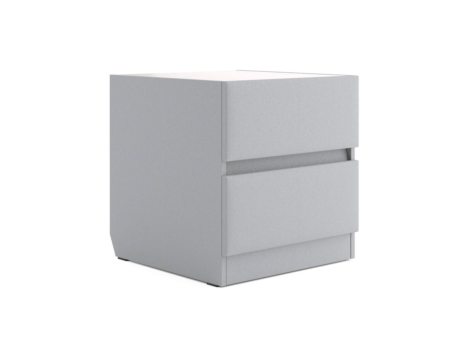 Тумба Omega выполнена в современном стиле. Прямые линии, отсутствие ручек и просвета от пола, делают ее универсальной, позволяя комплектовать тумбы с кроватями, имеющими лаконичное современное изголовье. Два выдвижных ящика с направляющими скрытого монтажа оснащены доводчиками. Задняя стенка выполнена из ДСП и обита спанбондом, что делает тумбу устойчивой и прочной. Тумба имеет скос под плинтус, что позволяет устанавливать ее вплотную к стене. Тумбу дополнительно можно укомплектовать стеклянной столешницей. Широкий выбор фактур и цветов исполнения.