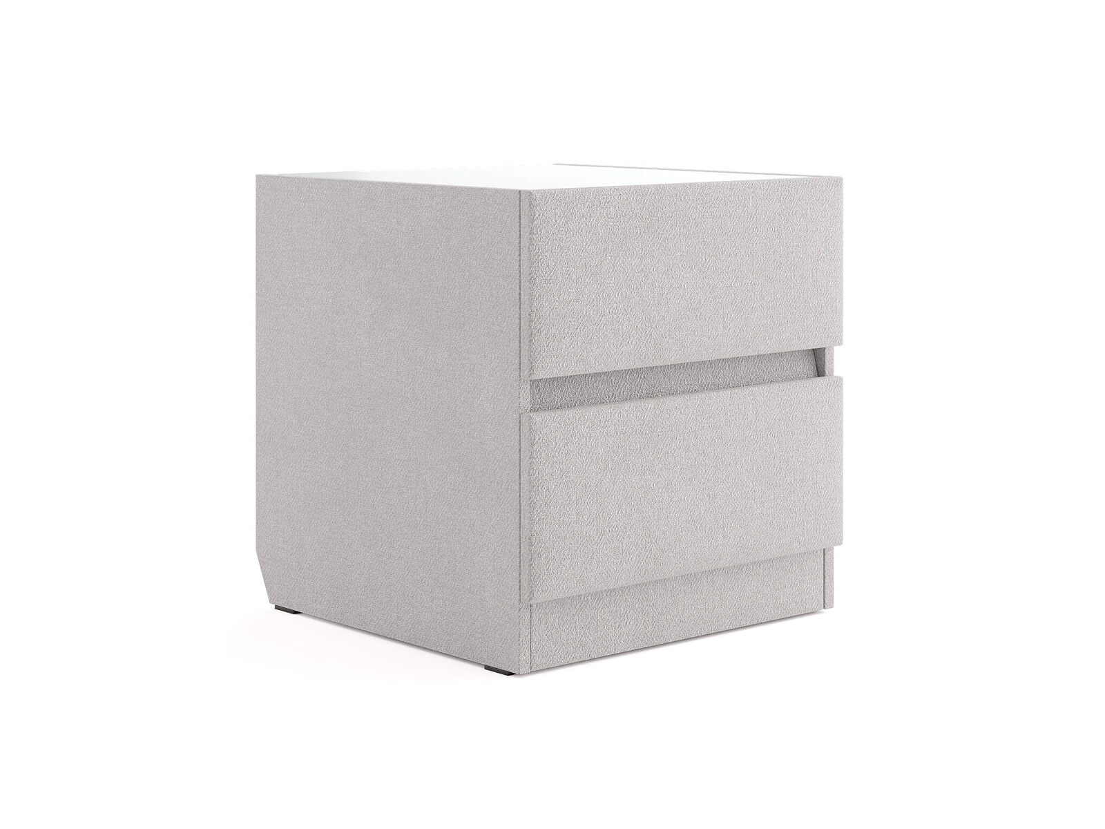 Тумба Omega выполнена в современном стиле. Прямые линии, отсутствие ручек и просвета от пола, делают ее универсальной, позволяя комплектовать тумбы с кроватями, имеющими лаконичное современное изголовье. Два выдвижных ящика с направляющими скрытого монтажа оснащены доводчиками. Задняя стенка выполнена из ДСП и обита спанбондом, что делает тумбу устойчивой и прочной. Тумба имеет скос под плинтус, что позволяет устанавливать ее вплотную к стене. Тумбу дополнительно можно укомплектовать стеклянной столешницей. Широкий выбор фактур и цветов исполнения.
