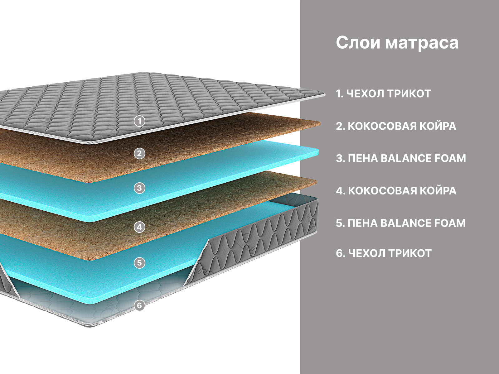 Пена Balance foam – очень пластичный и упругий наполнитель, поэтому хорошо подстраивается под формы тела, даря тем самым удобное и комфортное положение, независимо от позы сна.