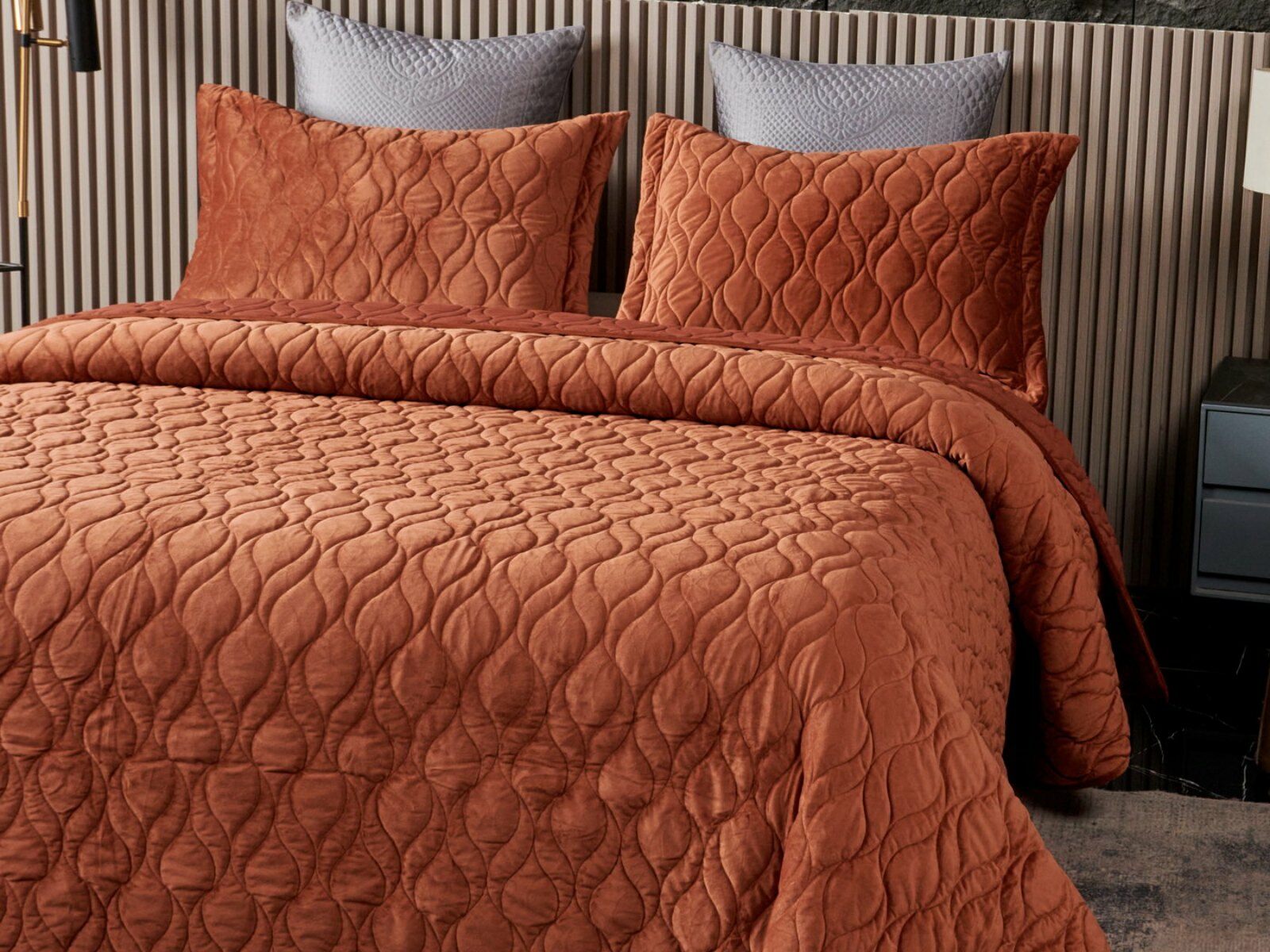 Покрывала представлены в 8 оттенках: пепельная роза, серый, крем, светлый беж, малахит, шоколадный, медный, антрацит