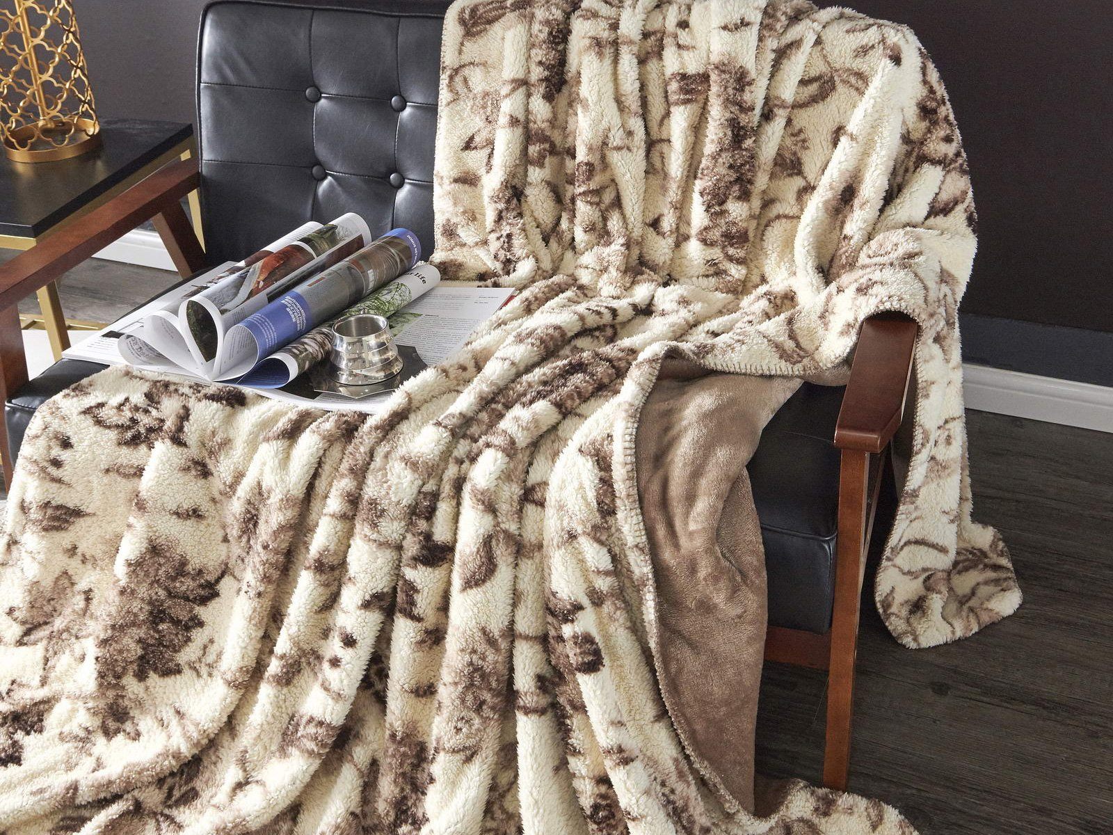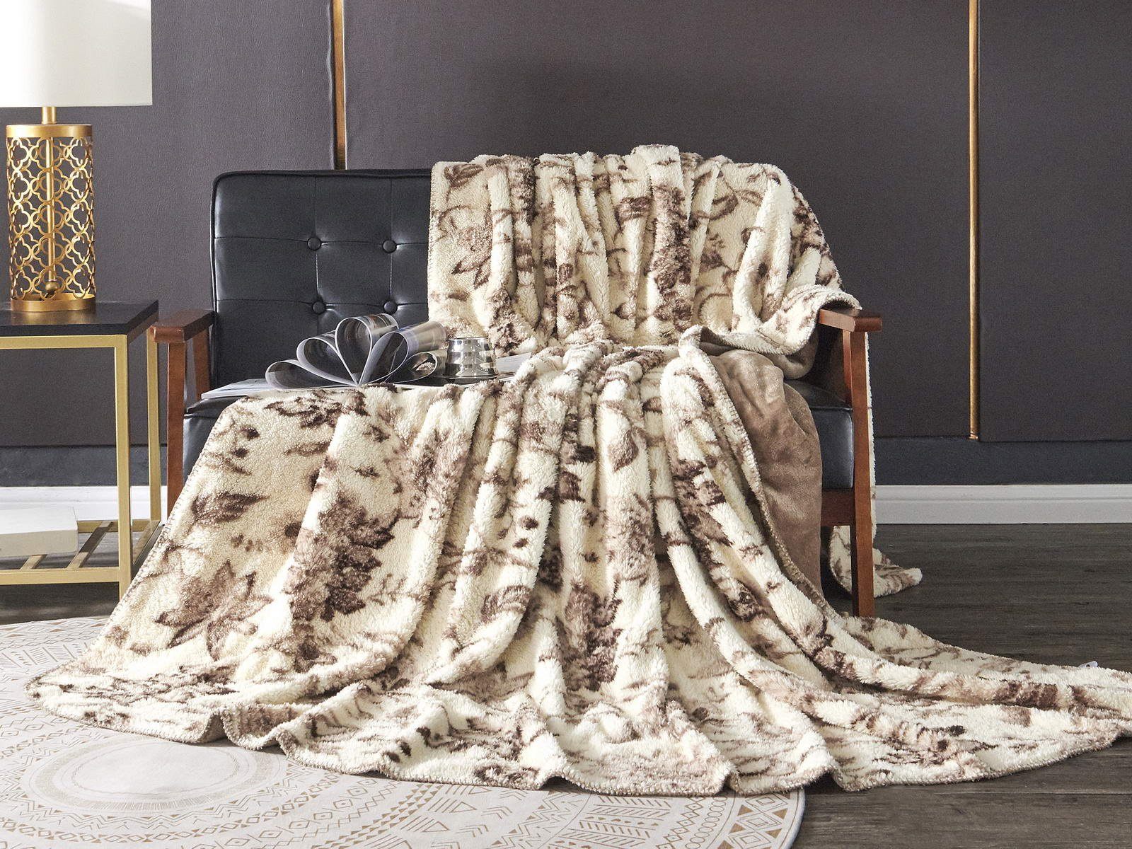Плед двусторонний: с одной стороны однотонный, с другой - рисунок прованс.