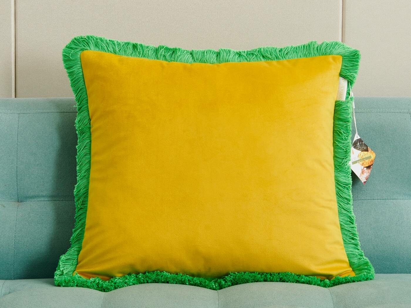 Коллекция пошита из мягкого и приятного на ощупь велюра плотностью 250г/м2. Наволочки с контрастной хлопковой бахромой добавят ярких акцентов и жизнерадостности в ваш интерьер. Большой выбор расцветок поможет расставить цветовой акцент и подчеркнет индивидуальность Вашей гостиной.