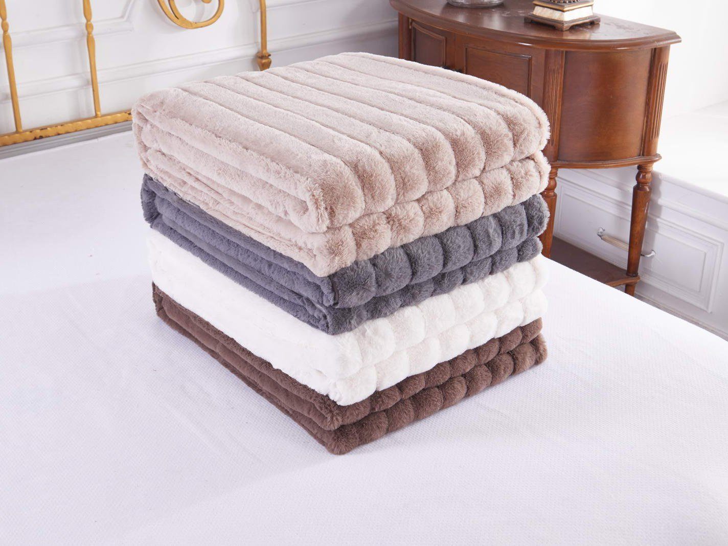 Пледы и наволочки Анабель гипоаллергенны, они подходят и детям, и людям с чувствительной кожей. Меховые пледы из вискозы практичны, благодаря особенному переплетению волокон, изделие не тянется.