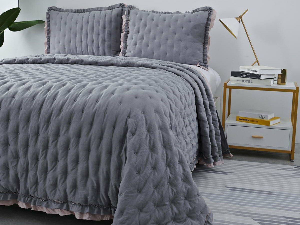 Покрывала выполнены в десяти оттенках, они подойдут для различных интерьеров, объединяет коллекцию потрясающее качество и приятный внешний вид. Изделия декорированы рюшами по краю, что подчеркивает из красоту и изысканность.