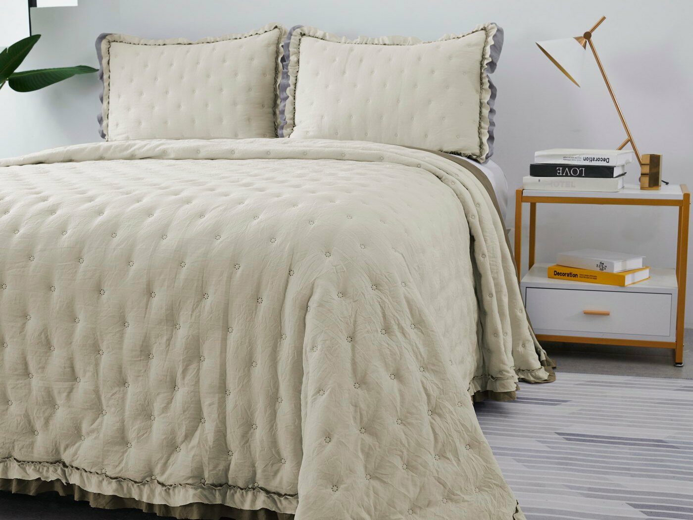 Двусторонние стеганные покрывала Элизабет выполнены из вискозы и хлопка, они легкие и прочные. В комплекте с покрывалом идут две наволочки, вы можете использовать покрывало по назначению, либо в качестве постельного белья. В любом случае, вы будете в восторге от этого комплекта!