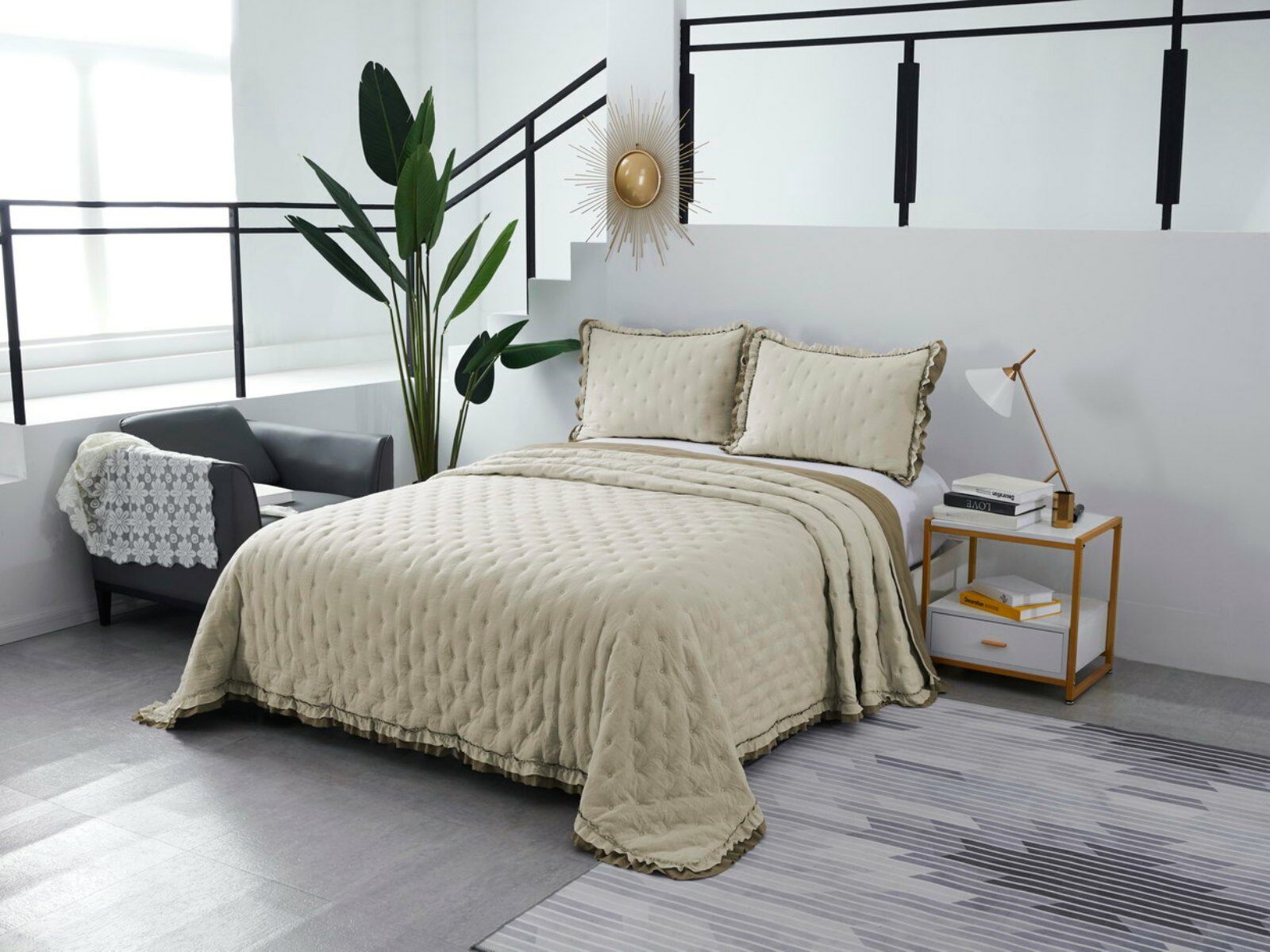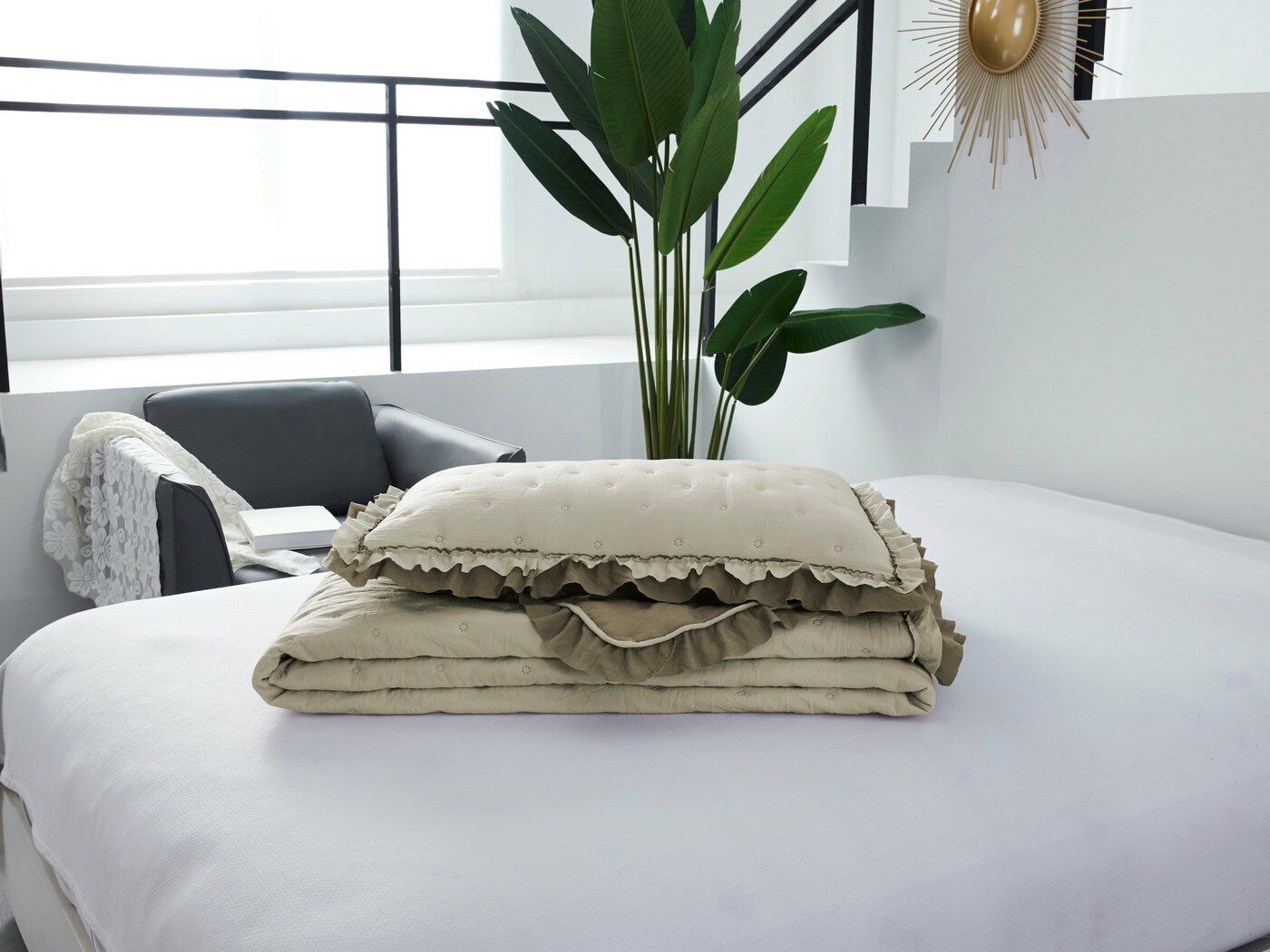 Покрывала выполнены в десяти оттенках, они подойдут для различных интерьеров, объединяет коллекцию потрясающее качество и приятный внешний вид. Изделия декорированы рюшами по краю, что подчеркивает из красоту и изысканность.