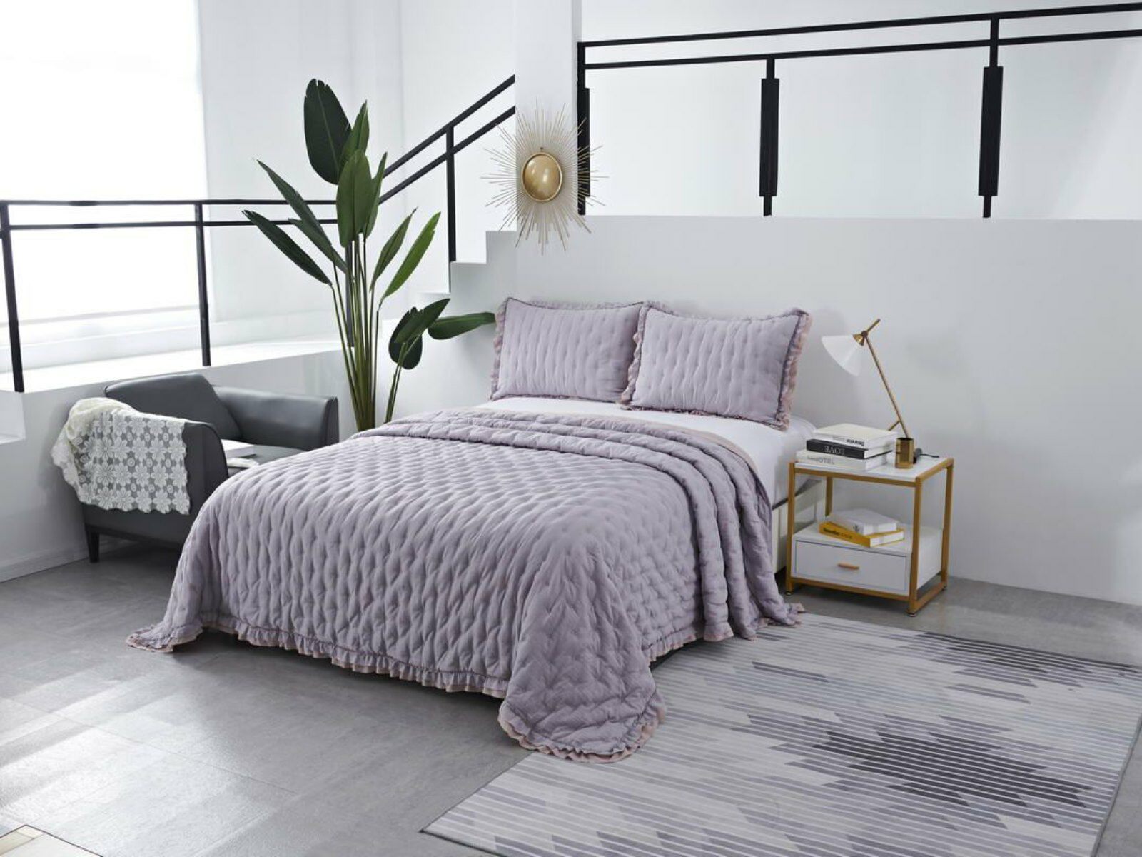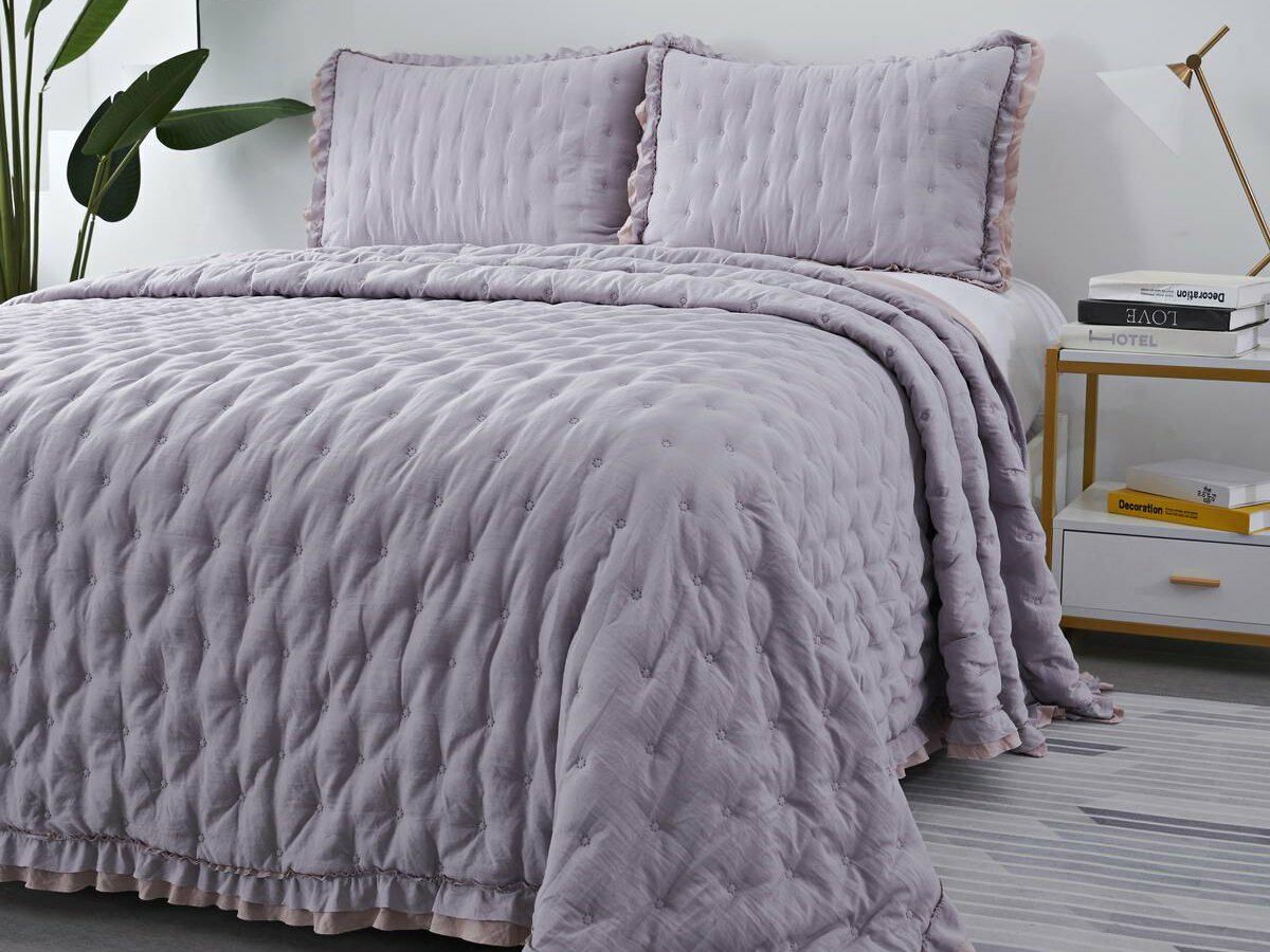 Покрывала выполнены в десяти оттенках, они подойдут для различных интерьеров, объединяет коллекцию потрясающее качество и приятный внешний вид. Изделия декорированы рюшами по краю, что подчеркивает из красоту и изысканность.