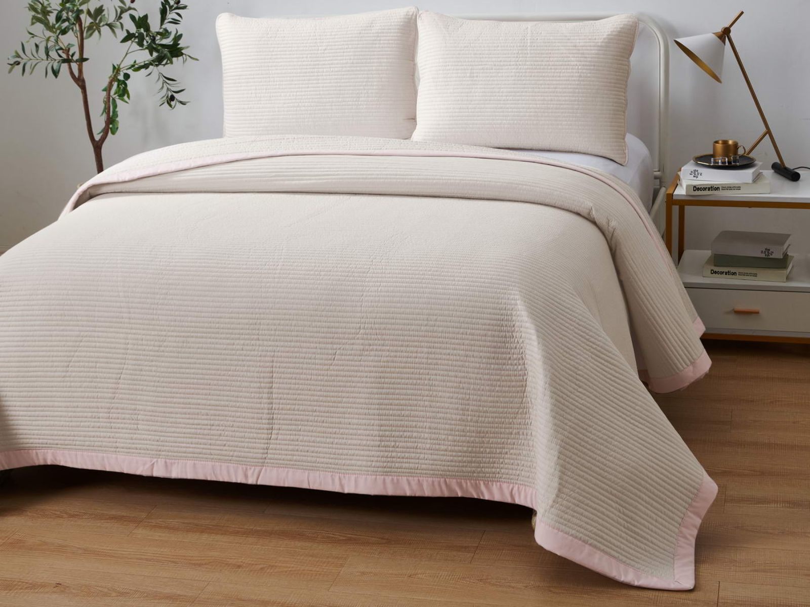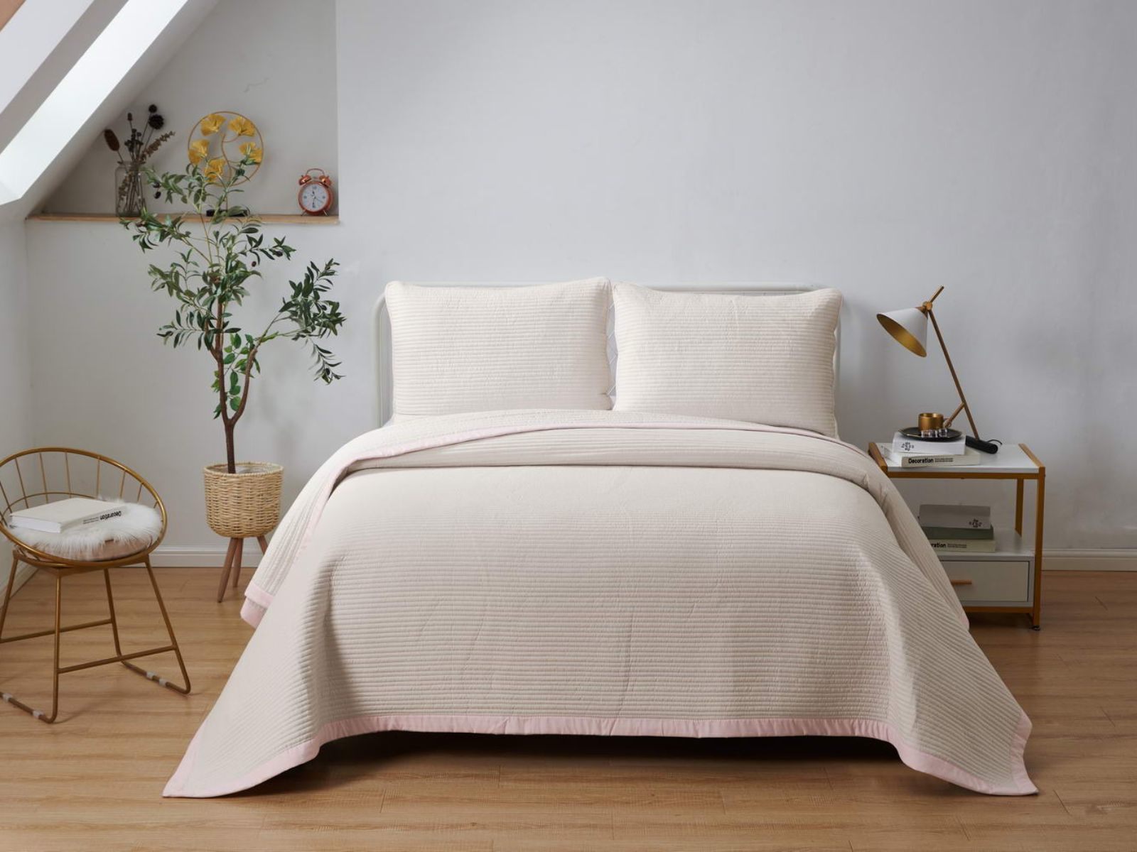 Легкое, стеганое и очень красивое покрывало с контрастной окантовкой обязательно украсит вашу комнату. Покрывало изготовлено из смеси хлопка и вискозы, поэтому оно легкое, но очень прочное. При правильном уходе за покрывалом Марисоль, оно прослужит долгое время, не полиняет и не потеряет форму.