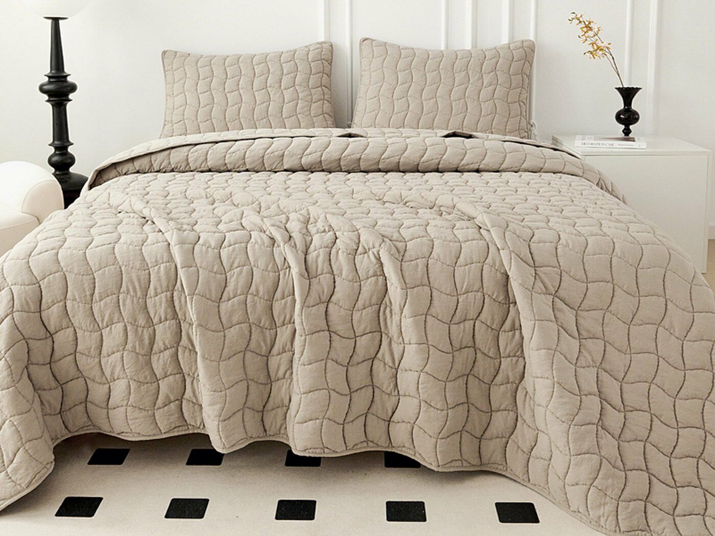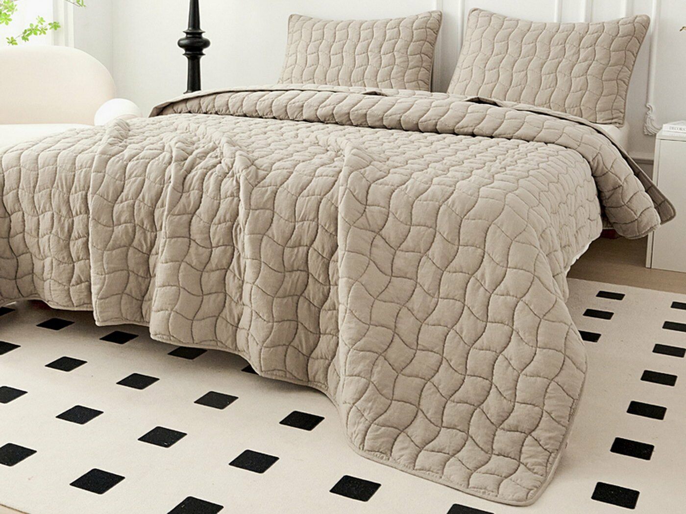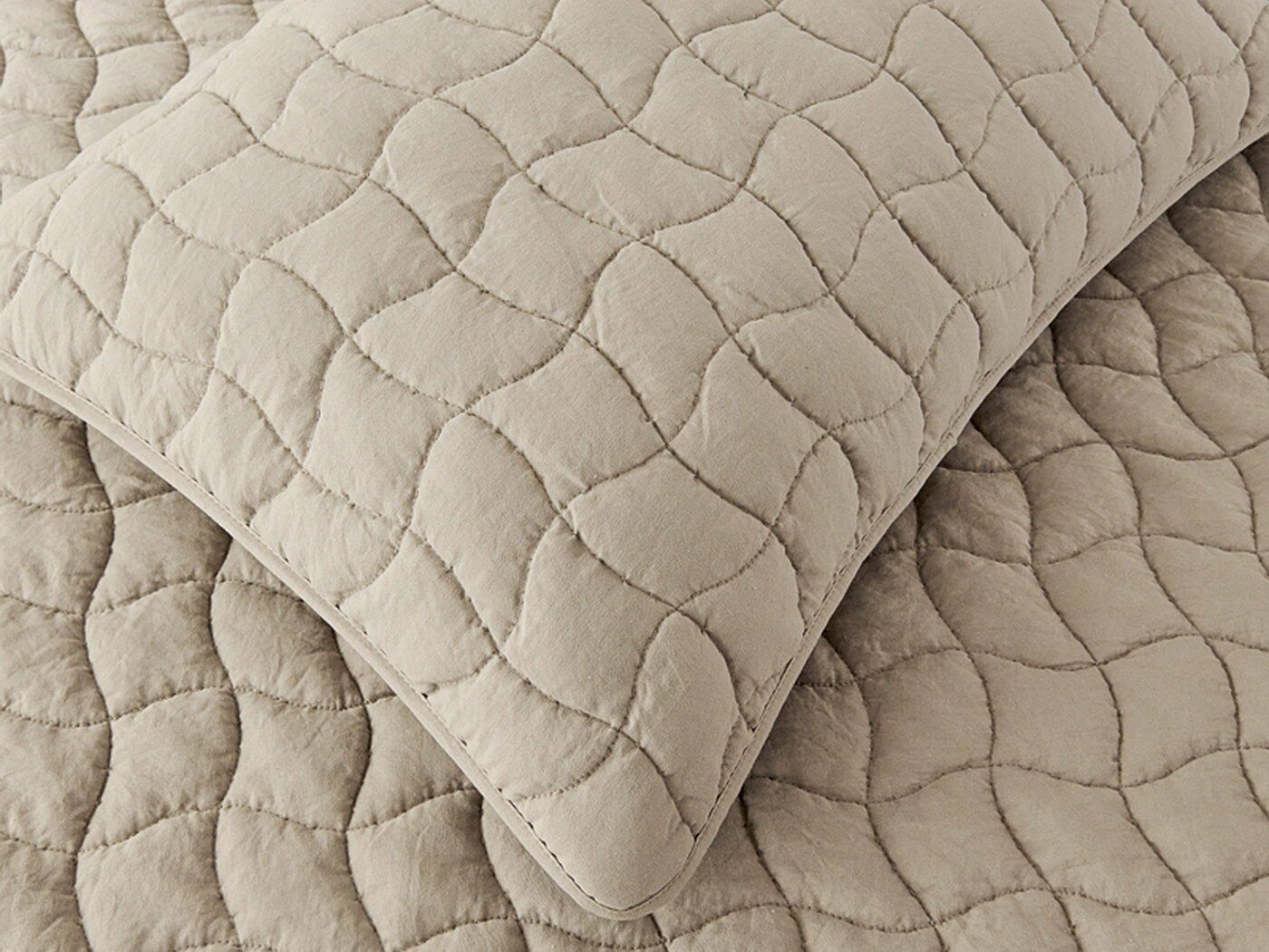 Покрывала и наволочки выполнены с кантом. Стежка двойной нитью под цвет покрывала.