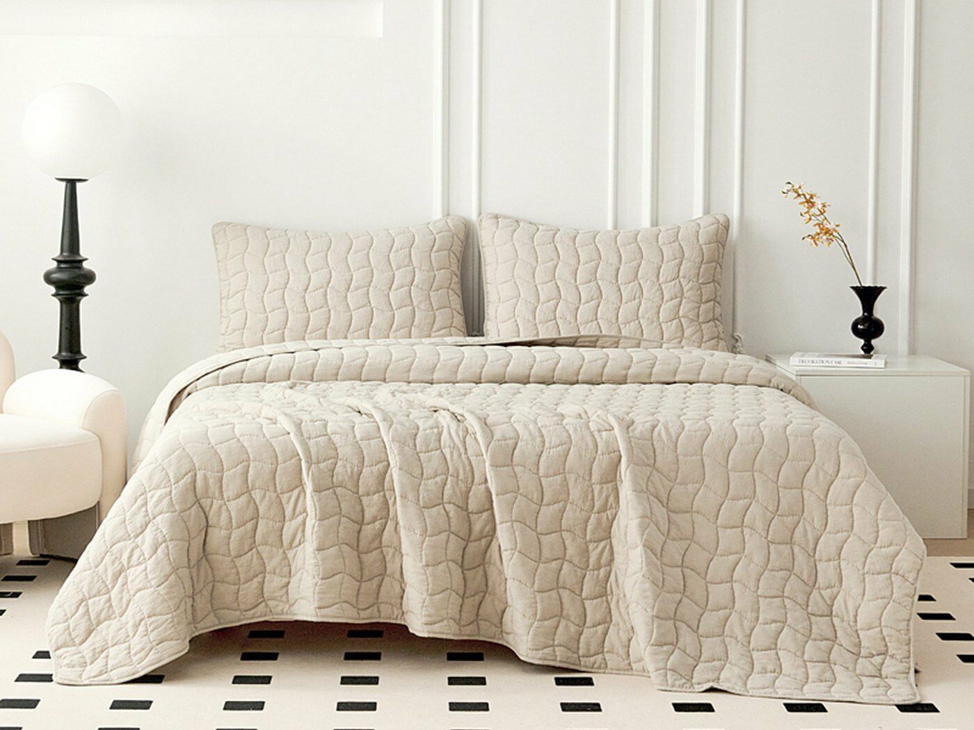 Покрывала и наволочки выполнены с кантом. Стежка двойной нитью под цвет покрывала.