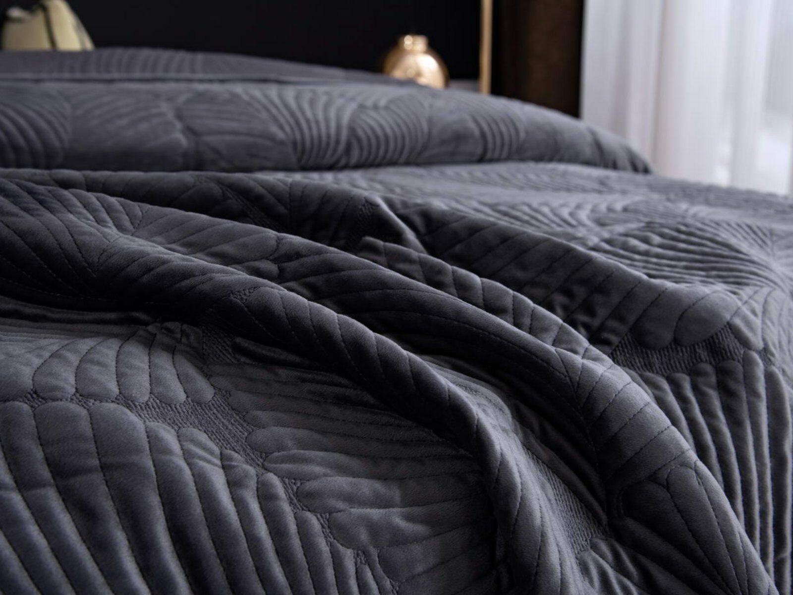 На создание велюрового покрывала Ноэль наших дизайнеров вдохновила ночь в середине лета, когда на раскаленную от жары землю спускается долгожданная прохлада. Роскошная вышивка в виде пальмовых листьев будет напоминать о тени, которую отбрасывают деревья.
