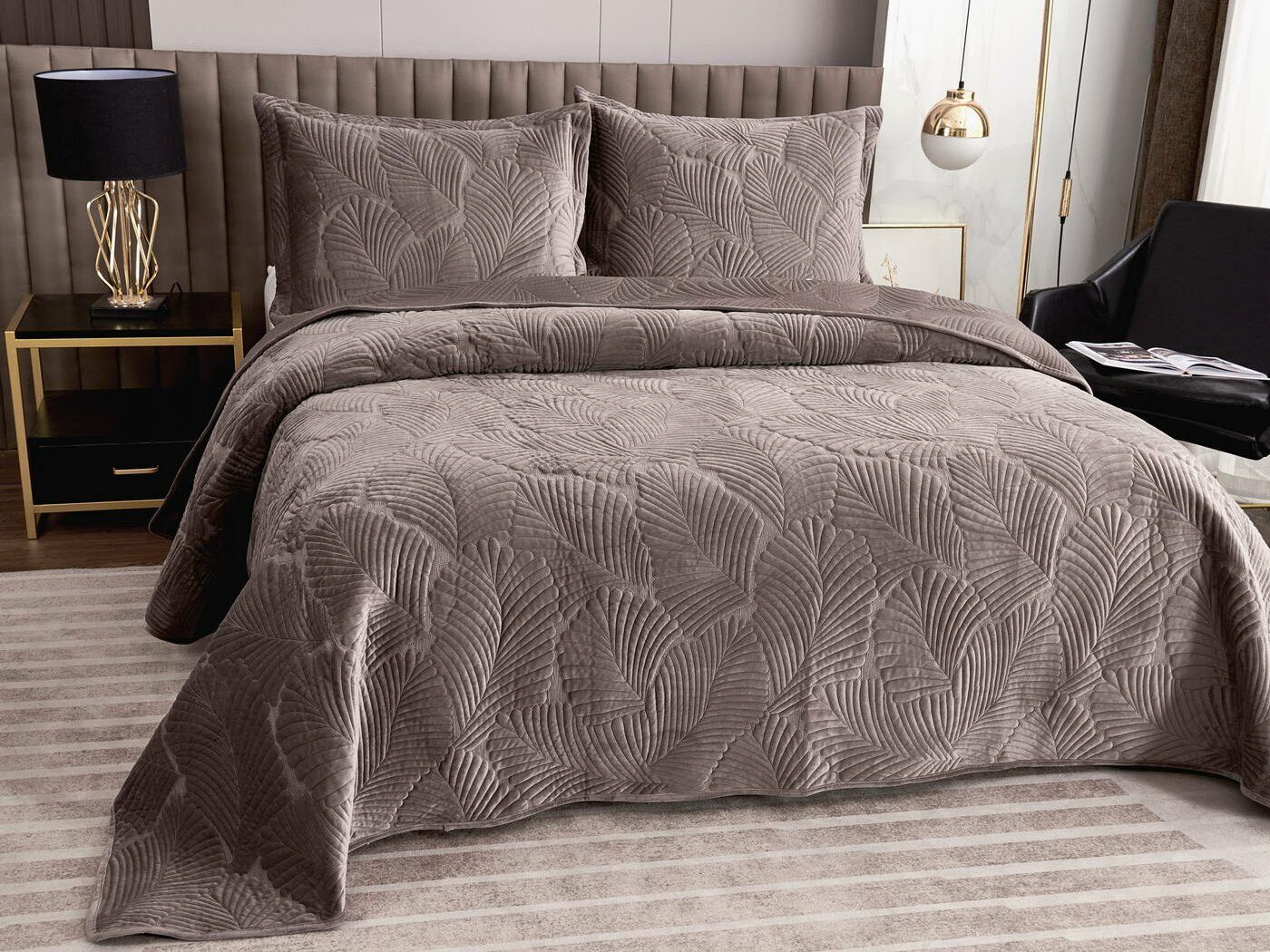 Покрывало приятное на ощупь, прекрасно выглядит. Из-за особого плетения, велюровая ткань будет отражать свет и красиво переливаться при разном освещении. Изделия из велюра хорошо сохраняют тепло и дарят чувство комфорта.