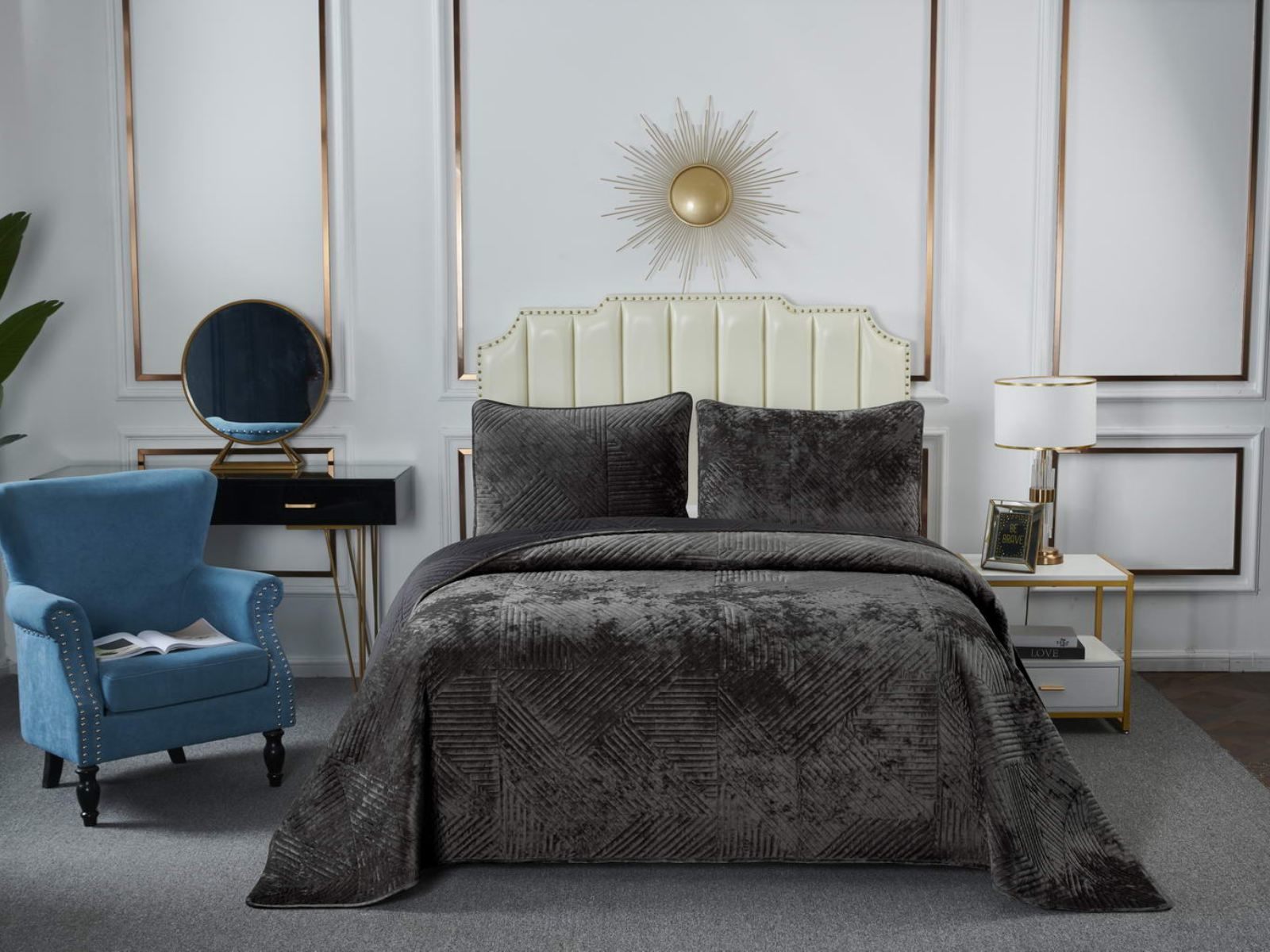 Покрывало Патрисия представлено в нескольких модных цветовых вариантах: изумруд, пепел розы, терракот, беж, серый, антрацит.