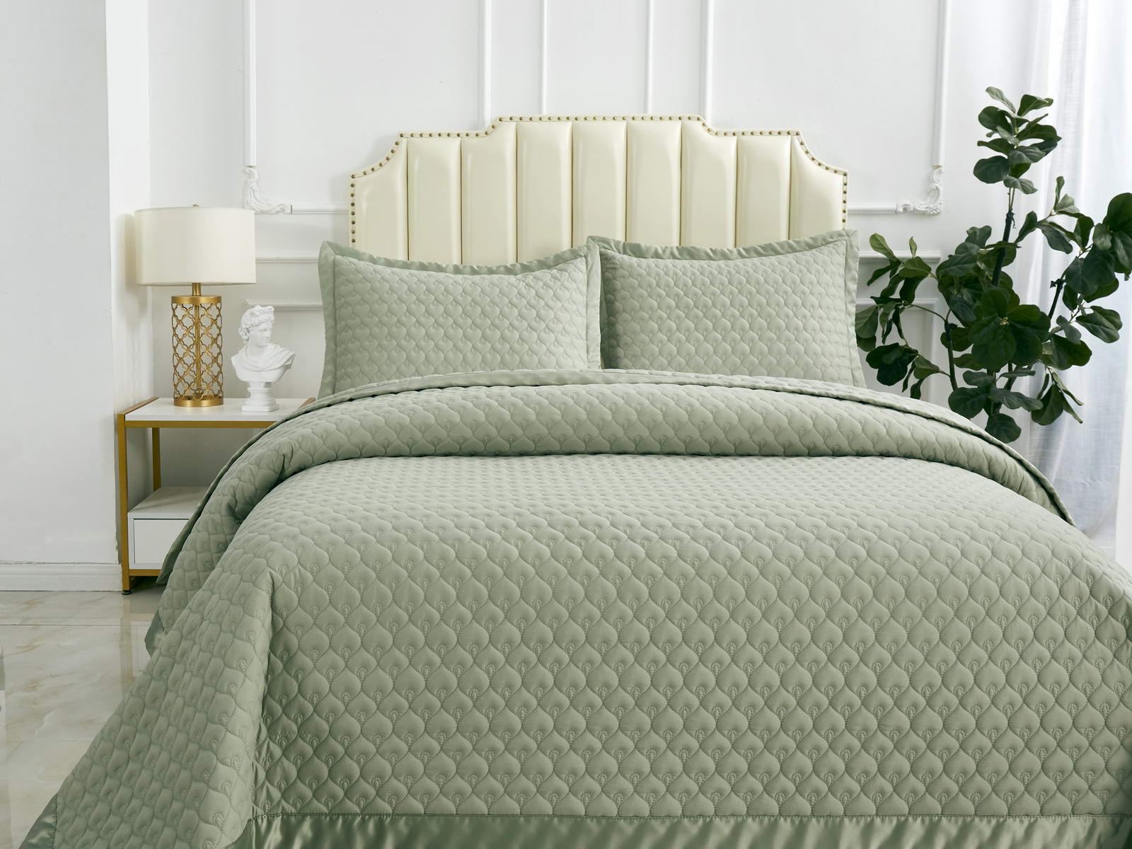 В комплект входят покрывало и одна либо две наволочки (50х70 см) из аналогичного материала в зависимости от размера. Изделия гипоаллергенны, они подходят детям и людям с чувствительной кожей. Покрывала и наволочки не линяют, сохраняют форму и цвет при многочисленных стирках и не выгорают на солнце. Изделия можно стирать в щадящем режиме при температуре не выше 30 градусов.