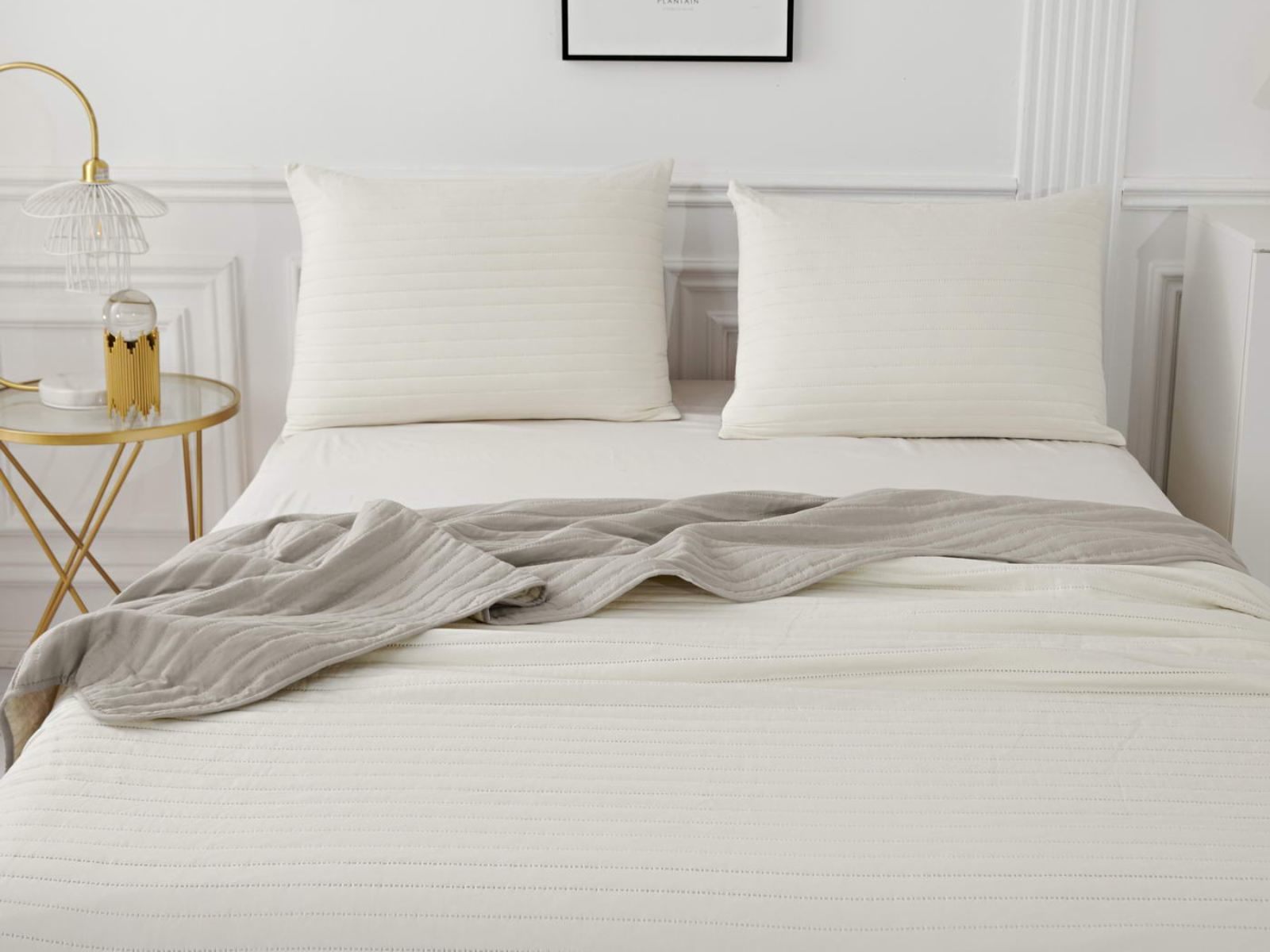 Двусторонние стеганные покрывала Самуэль выполнены из вискозы и хлопка, они легкие и прочные. В комплект входят покрывало и одна либо две наволочки (50х70 см) из аналогичного материала в зависимости от размера, вы можете использовать покрывало по назначению, либо в качестве постельного белья. В любом случае, вы будете в восторге от этого комплекта!