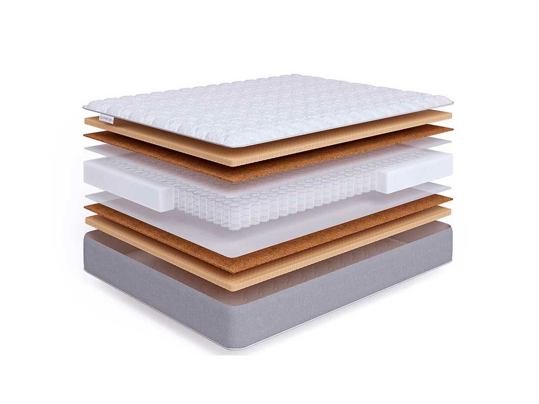 Натуральная кокосовая койра состоит из кокосовых волокон, пропитанных латексом. Она придает матрасу жесткость и упругость. Кокосовая койра также имеет превосходные ортопедические и эксплуатационные свойства.