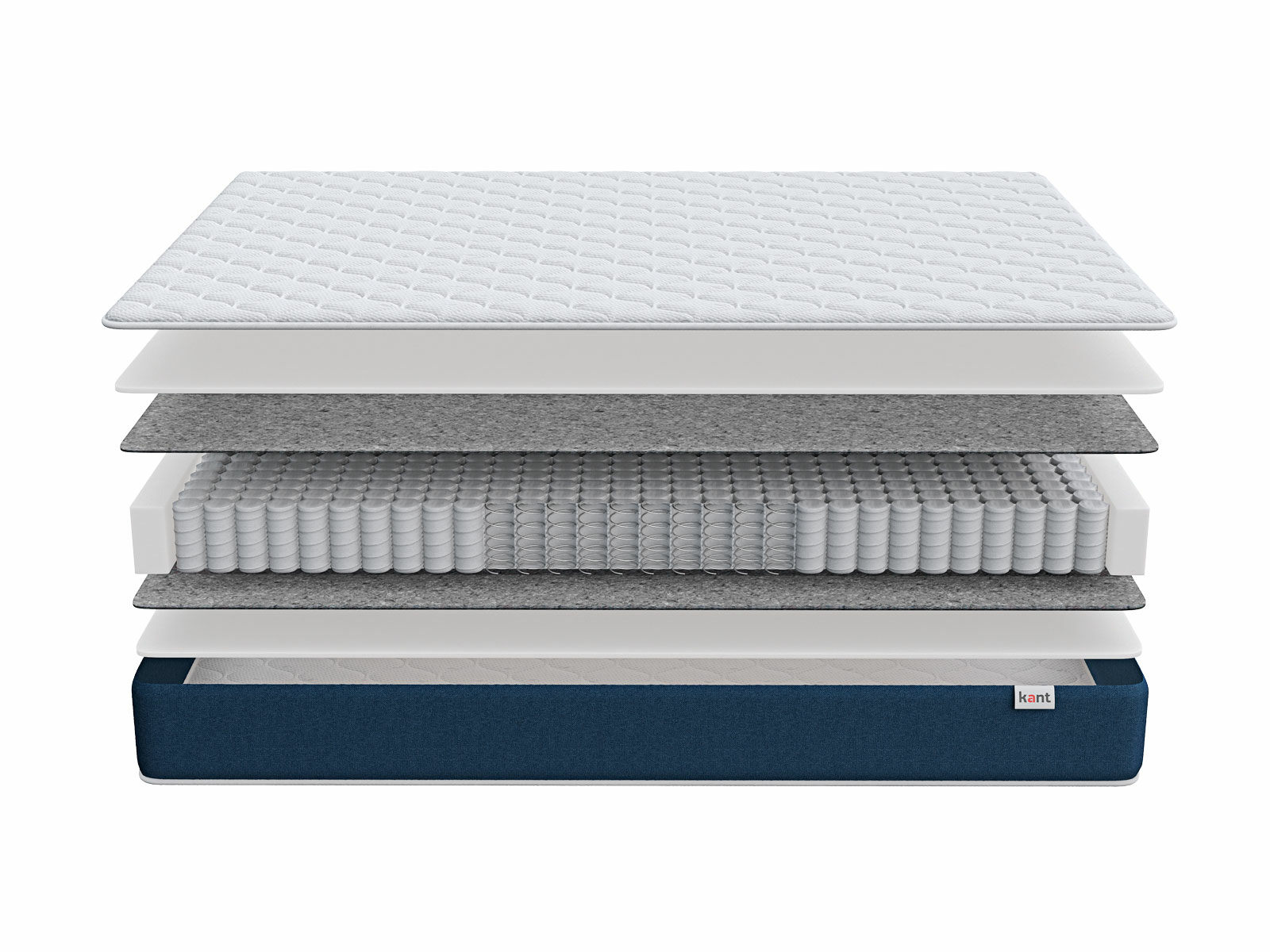 Слоем комфорта выступает ортопедическая пена Kant Extra Foam. Этот наполнитель в меру мягок, упруг и эластичен, поэтому прекрасно считывает контуры фигуры и подстраивается под них. Благодаря таким свойствам мышцы быстро расслабляются и человек комфортно и спокойно засыпает.