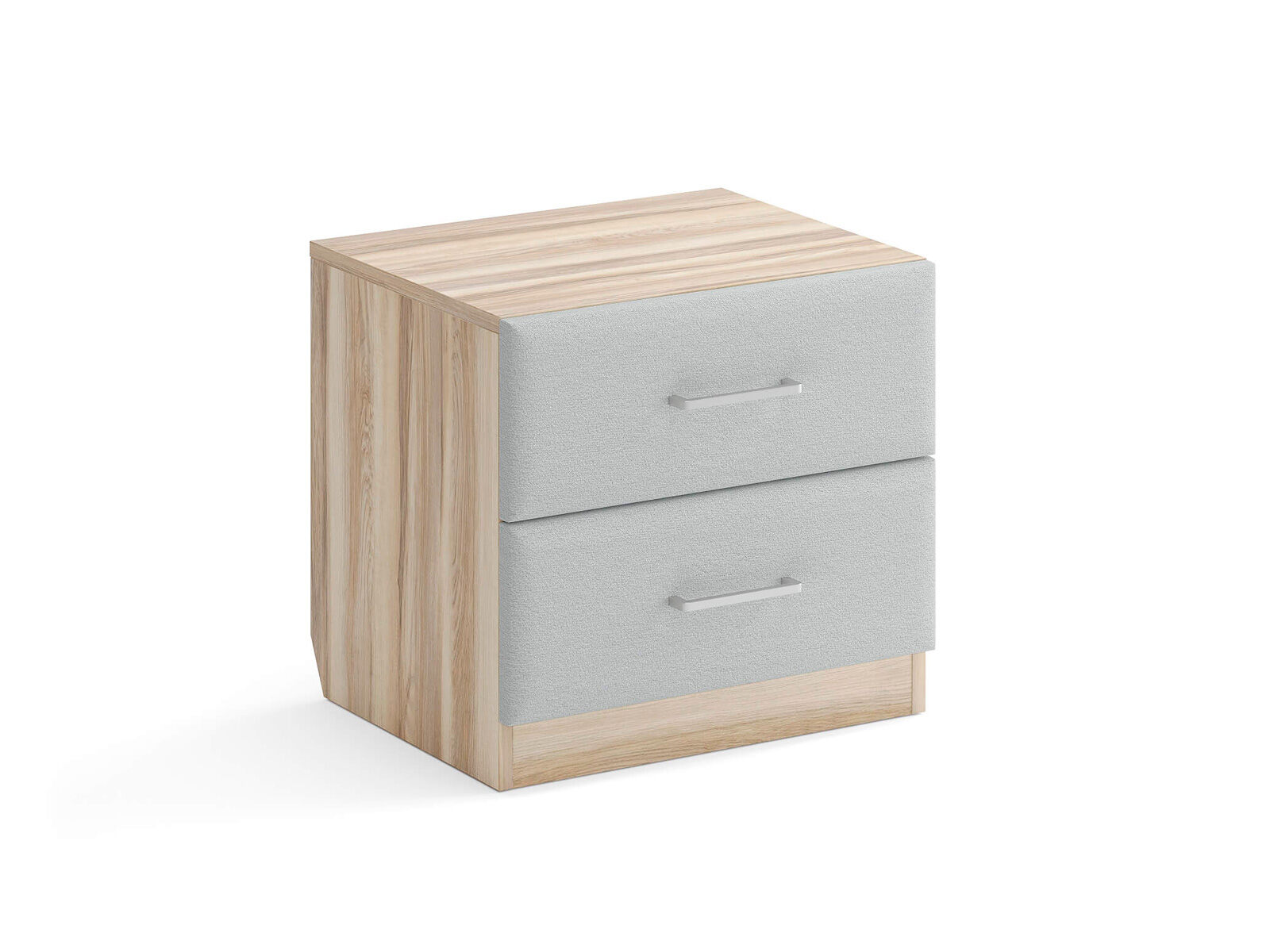 Элегантная комбинированная тумба, сочетающая в себе лаконичность ЛДСП и уют мягких фасадов ящиков, обтянутых тканью. Конструкция тумбы предусматривает два вместительных выдвижных ящика с направляющими скрытого монтажа и доводчиками. Корпус из ЛДСП гарантирует долговечность и устойчивость к механическим повреждениям, а мягкие фасады в ткани и изящные металлические ручки добавят уют. Большое разнообразие текстур и цветовых решений для гармоничной интеграции в любой интерьер.
