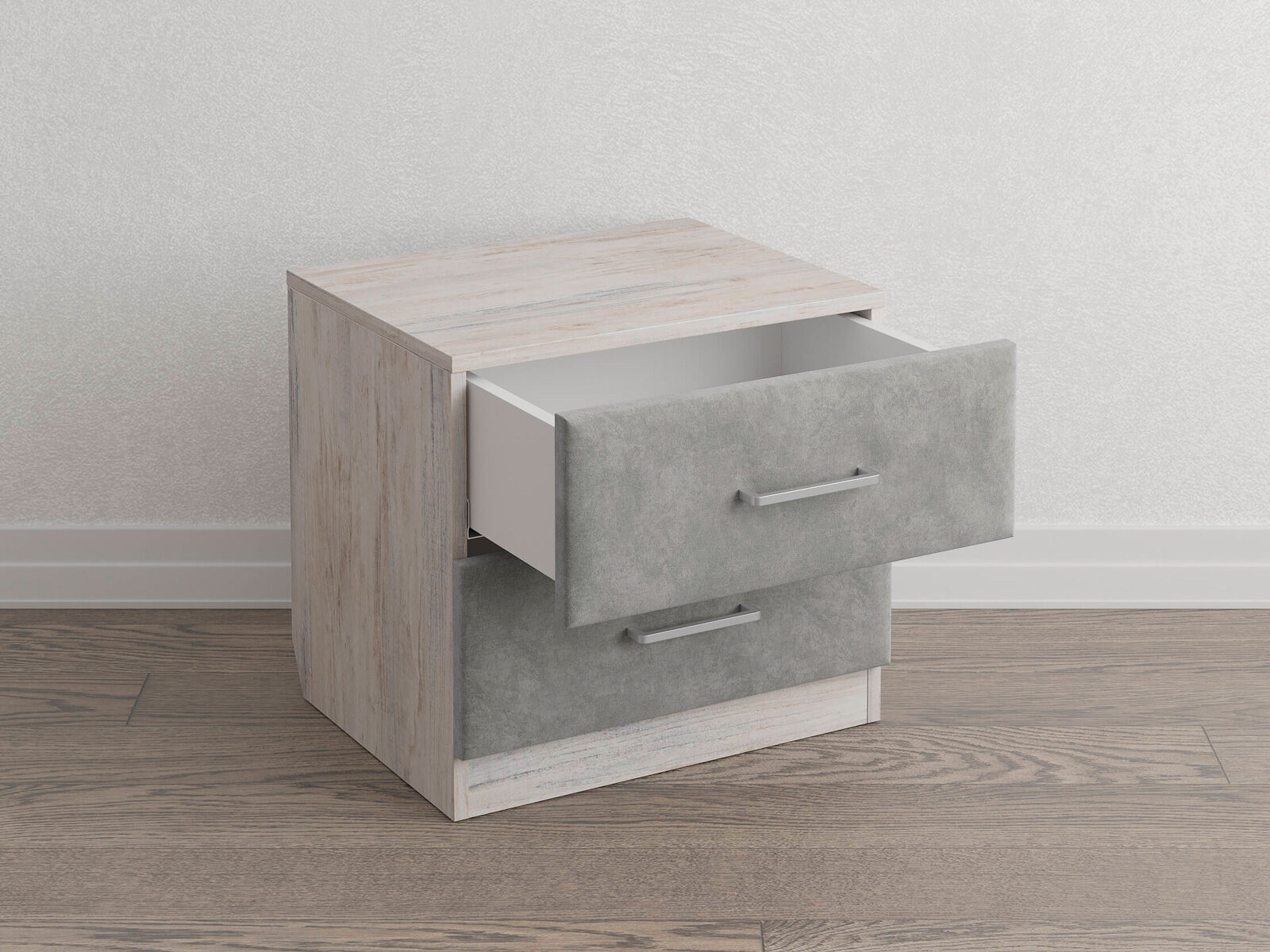 Элегантная комбинированная тумба, сочетающая в себе лаконичность ЛДСП и уют мягких фасадов ящиков, обтянутых тканью. Конструкция тумбы предусматривает два вместительных выдвижных ящика с направляющими скрытого монтажа и доводчиками. Корпус из ЛДСП гарантирует долговечность и устойчивость к механическим повреждениям, а мягкие фасады в ткани и изящные металлические ручки добавят уют. Большое разнообразие текстур и цветовых решений для гармоничной интеграции в любой интерьер.