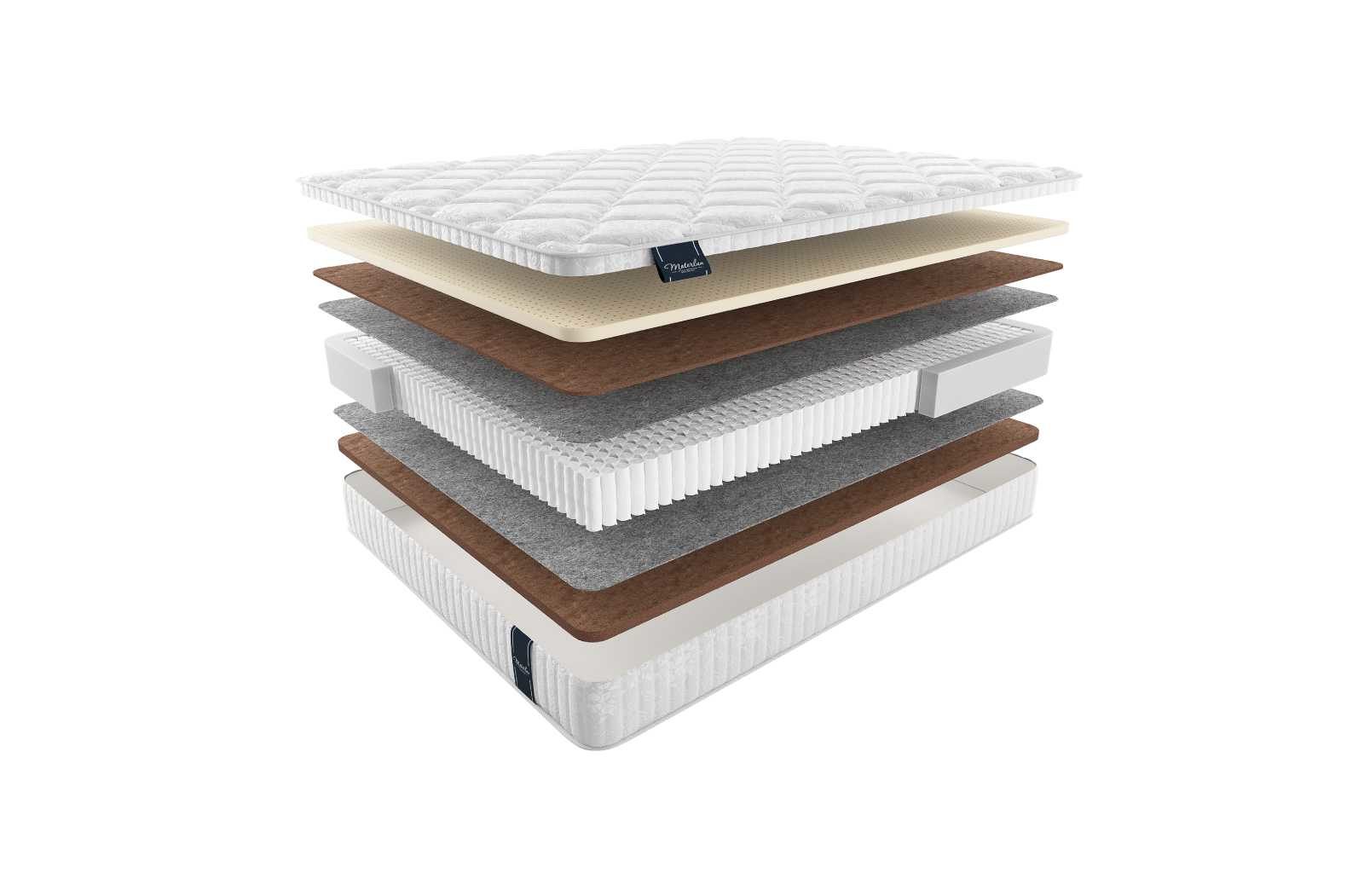 Двусторонний матрас TREVISO имеет разную жёсткость сторон и пружинное основание. В модели присутствует толстый слой натурального латекса, который даёт классическую среднюю мягкость, а также плита кокосовой койры с более выраженность жёсткостью.