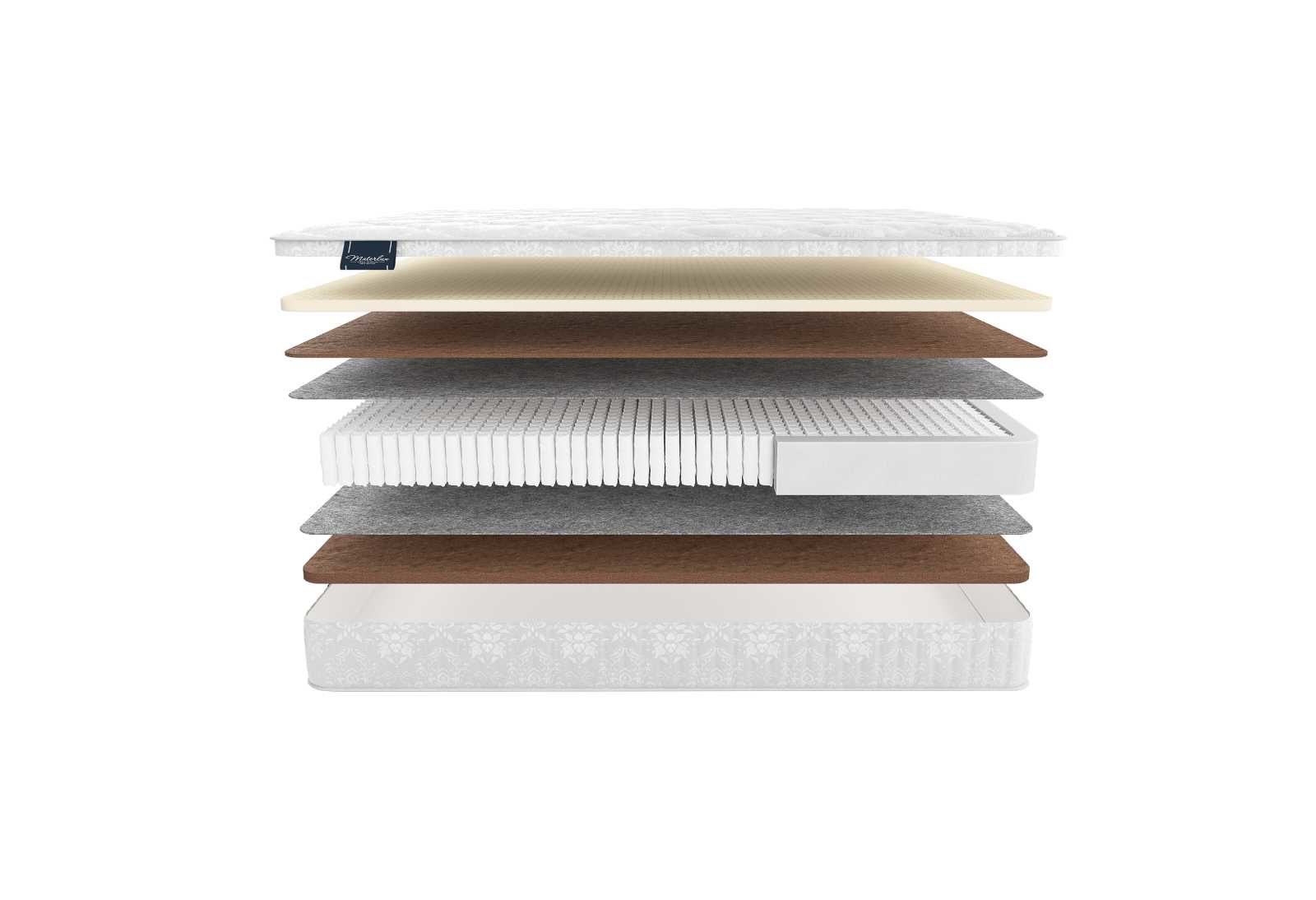 Прослойки термофиксированного фетра изолируют блок как сверху, так и снизу. По бокам же пружины защищены своеобразным коробом из прочной пены. Все это выступает гарантией долговечности модели.