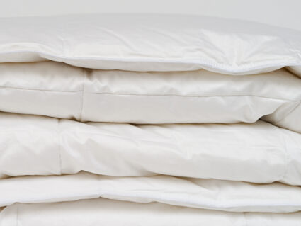 Рекомендации по уходу: стирать каждое изделие отдельно при температуре 40⁰, с использованием специальных средств для пуха, отжим на высоких оборотах барабана, сушить в расправленном виде. Барабанная сушка при строгом соблюдении температуры. Каждая новая стирка сокращает срок службы изделия. Не использовать отбеливающие средства. Регулярно встряхивать и взбивать изделия после проведенной на них ночи. Хранить не герметично запакованными с притоком свежего воздуха. Воздержаться от использования постельного белья из синтетических и смесовых тканей.